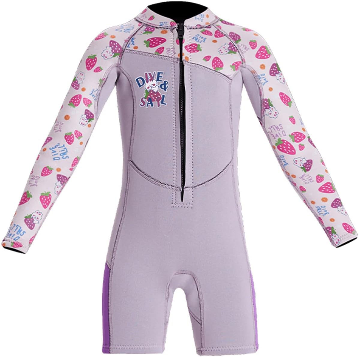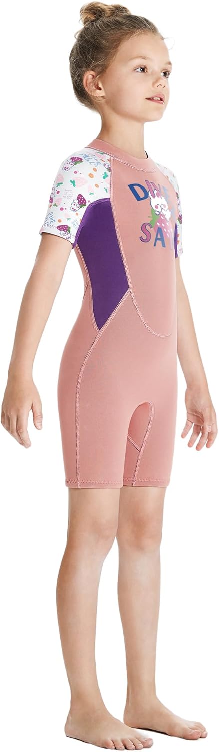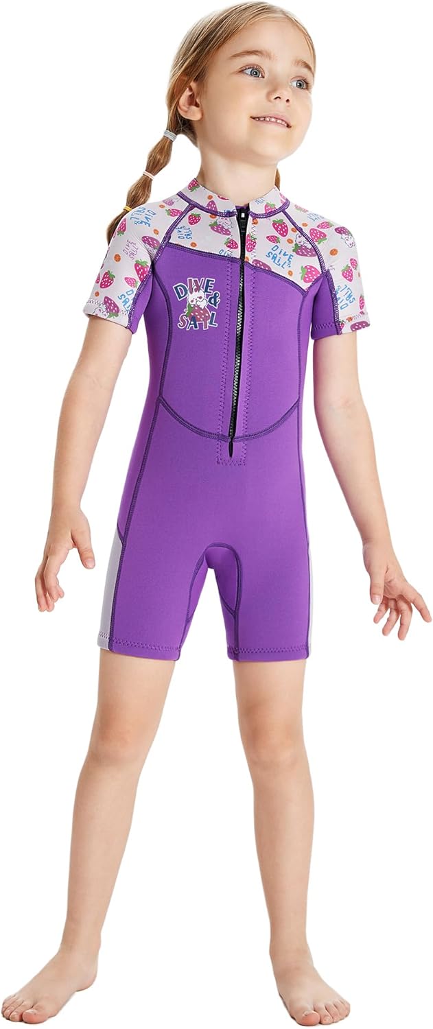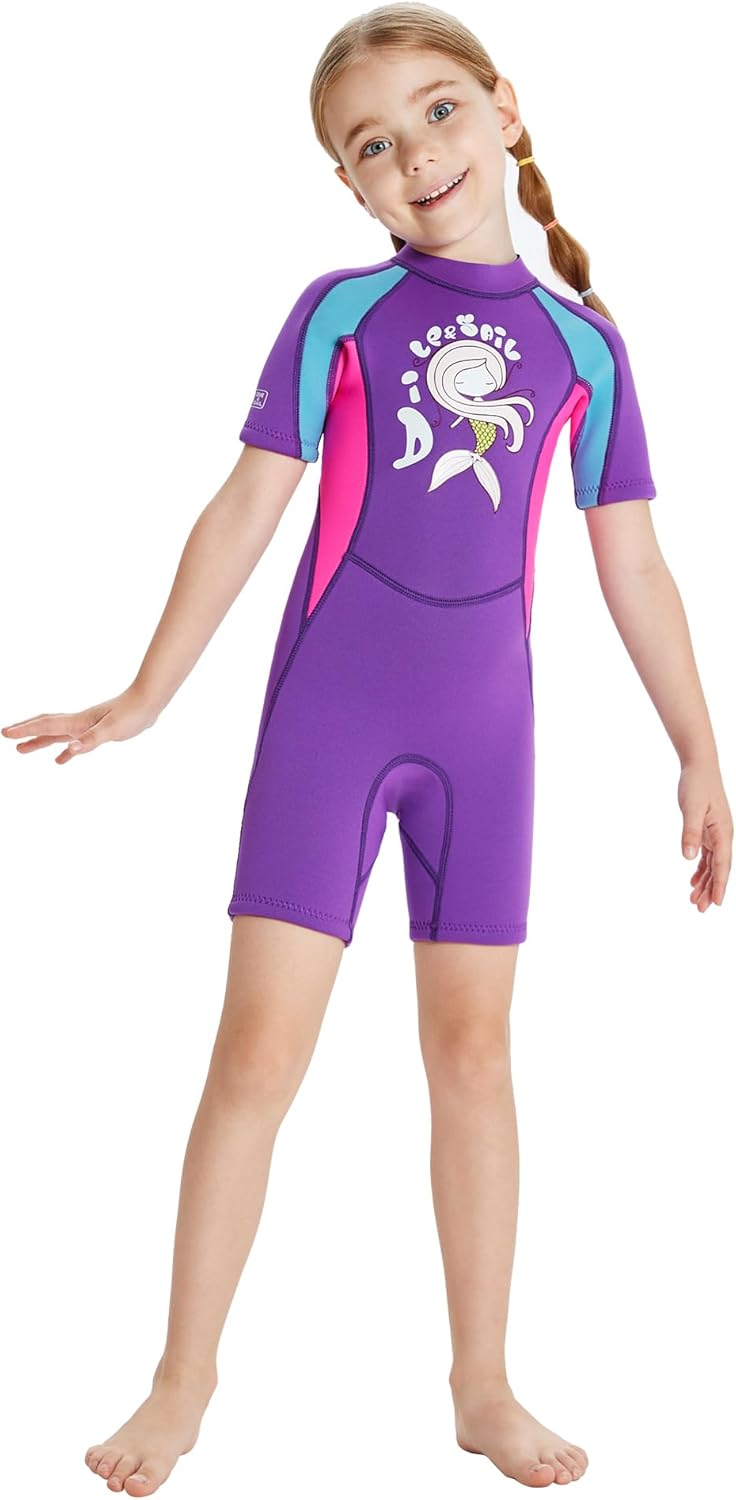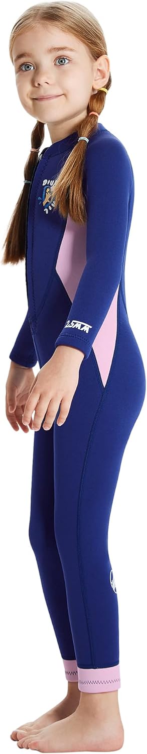 Material: Neoprene, Nylon Weight: 1.4lb Available: 4-10 Years Girls or Boys Size: S,M, L, XL, XXL (optional) S: Chest:21.26in---Waist:19.7in---Hips:23.6in---Recommend Height:37-41inch M: Chest:22.8in---Waist:21.26in---Hips:25.2in---Recommend Height:41-45inch L: Chest:24.4in---Waist:22.8in---Hips:26.7in---Recommend Height:45-49inch XL: Chest:26in---Waist:25.2in---Hips:29.1in---Recommend Height:49-53inch XXL:Chest:27.6in---Waist:26.8in---Hips:31.5in---Recommend Height:53-57inchPerfect Sun Protection:This is a one-piece, full body coverage, sun protection swimsuit. The suit has long legs and long sleeves. This UV-protective swimsuit with long sleeves for maximum coverage lets kids play outside without feeling the burn. Get one now, don't miss the chance for yourself beloved ones to enjoy a new and exciting life experience! Product for kids: 1.2.5 mm kids neoprene full wetsuit keep warm and prevent burn for child. 2.Wetsuit kids provide back zip for easy entry and exit,neoprene layer is designed between zip and skin. 3.Flatlock stitching will close to kid skin, kids wetsuit for boys will durable and not stimulate skin. 4.With 4-way stretch material and cool design give children a fun time in the water. Like mom's hands protect kids: Neoprene keep children warm and sun protection. wetsuit kids is loyal companion of diving, swimming and kayaking.Comfortable and stretch material is close to body, easy to do multi-water sport. kids full wetsuit could prevent skin scratch and isolate jellyfish.Parents could rest assured and do not worry about kids do water sport.