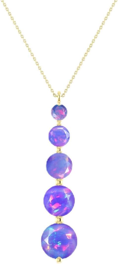 Add a burst of color and elegance to your jewelry collection with the GOODSTONE JEWELS 925 Sterling Silver Black Opal Linear Chain Pendant Necklace for Women. Meticulously crafted from premium 925 sterling silver and luxuriously plated in yellow gold, this stunning round opal pendant radiates multicolor brilliance, capturing attention with every movement. The fire opal gemstone, known as the October birthstone, showcases mesmerizing flashes of color, making it a perfect gift for birthdays or special milestones. Its sleek cable chain design measures 16 inches and includes a 2-inch extender, ensuring a perfect fit for any neckline and ideal for layering with other dainty necklaces. Designed with comfort in mind, this hypoallergenic, nickel-free necklace is safe for sensitive skin and lightweight enough for all-day wear. Whether you're dressing up for a night out or adding sparkle to your everyday look, this minimalist black opal pendant necklace brings just the right amount of charm and sophistication. Presented in elegant packaging, this pendant makes a thoughtful gift for your wife, girlfriend, mother, daughter, or friend. Celebrate her style with a piece that blends timeless beauty with modern design, only from GOODSTONE JEWELS.