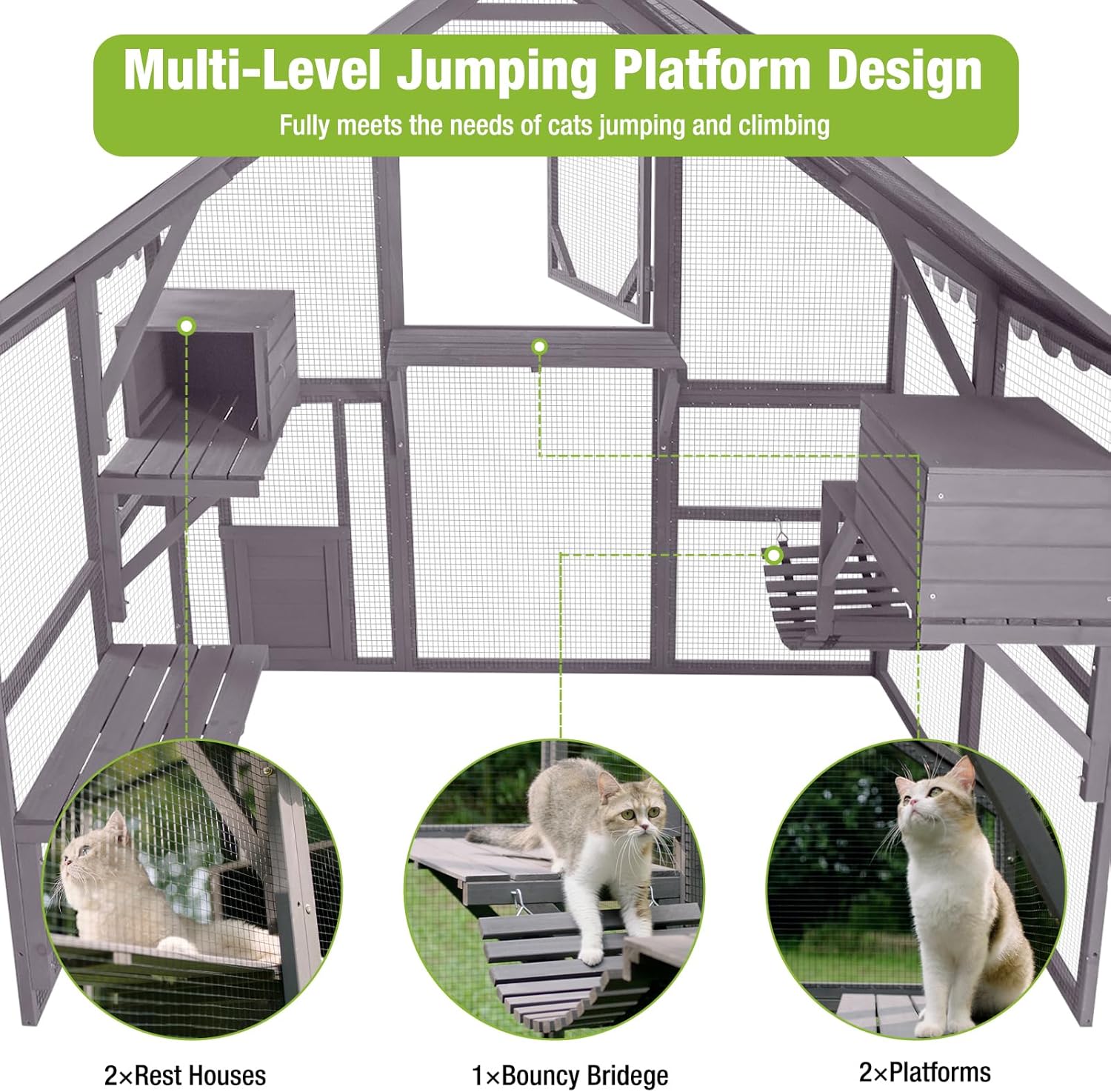 | Included Components | Bouncy Bridege, Platforms, Rest Houses |