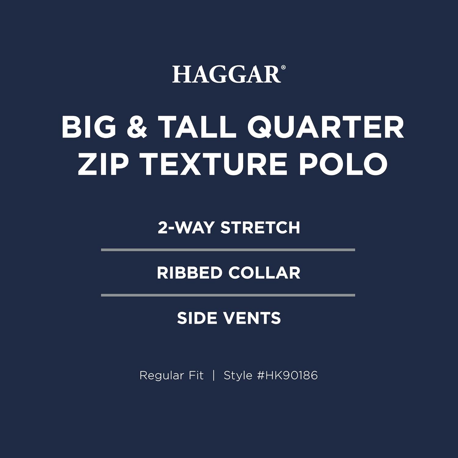 Upgrade your casual wardrobe with the Haggar® Men's Premium Comfort Quarter Zip Houndstooth Polo in Big & Tall sizes, combining classic style with modern comfort. Made from a blend of cotton and polyester, this short-sleeve polo features a subtle houndstooth pattern and a quarter-zip design for a sleek, polished look. With ribbed details, side vents, and a regular fit, it’s the perfect choice for versatile, everyday wear.
