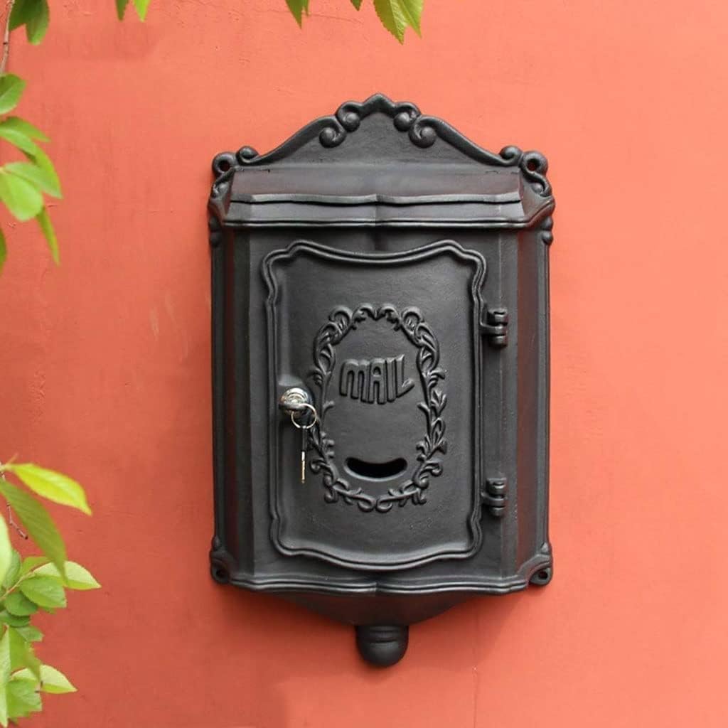 Mailbox European Outside Aluminum Wall Mount Post Box Secure Mailbox Letterbox Outdoor Retro Vintage Mailboxes /20x12inches◆ : mailbox◆ Product Size:30.5×10×50.5CM◆ Product gross weight: 4.75KG◆ Product Material: casting aluminum alloy and galvanized sheetWall Attachment:◆ We recommend that you have two for the wall attachment process.◆ person will hold the mailbox against the wall,while the other uses a drill to machine the holes.◆ Once the mailbox is level use the drill bit to predrill the holes for the screws and anchors.◆ Insert the anchors and drill in the screws with washer, fastening securely but not over fastening to protect the integrity the wall.Handle Attachment:◆ the collection slot and insert the two small screws provided into the holes◆ Next fasten the screws to handle◆ Your mailbox is now ready for use!Precautions:The color of the product may vary due to the angle of the lens and light.The shooting items involved in the picture are not included in the product.Manual measurement of dimensions with a deviation of 1-3 cm.It can be used both indoors and outdoors.