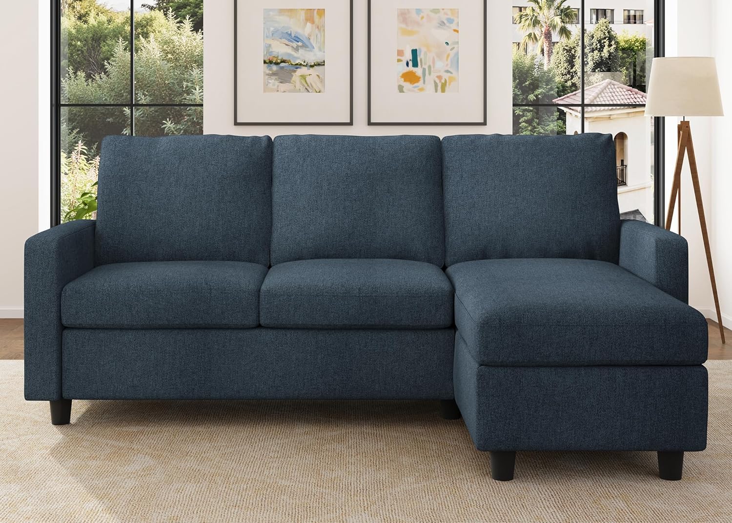 The sofa is made of soft fabric upholstery on hardwood frame with overstuffed back cushions and foam seat cushion. The more you sit in HONBAY sectional sofa couch the better. Enjoy cozy family movie nights and host classy cocktail parties alike all at this stylish sectional sofa. The HONBAY brand is committed to the design and application of furniture, creating applicable high-quality sofas for the diversity of interior space, we focus on offering customers good shopping experience and professional customer' services. The cushions are thickened and fluffy back cushions which provide you with much support. These cushions make the sofa very comfortable to sit and they are nice and firm that provides you with support so you will not have to worry about sinking in however you sit on it. The more you sit in the better you feel. You can use this sofa in your small apartment, upstairs loft and more places as they are perfect and small space reversible sectional sofa. The ottoman in the sofa is movable so the chaise of the couch can be either right or left side. The sofa is also convertible so that you can adjust the shape of the couch freely to match your home and favor. You can easily assemble and disassemble the sofa with the help of easy-to-follow assembly instructions. There are no tools needed to do that and the sofa is convenient to move too. The sofa can be assembled easily in 20 minutes.