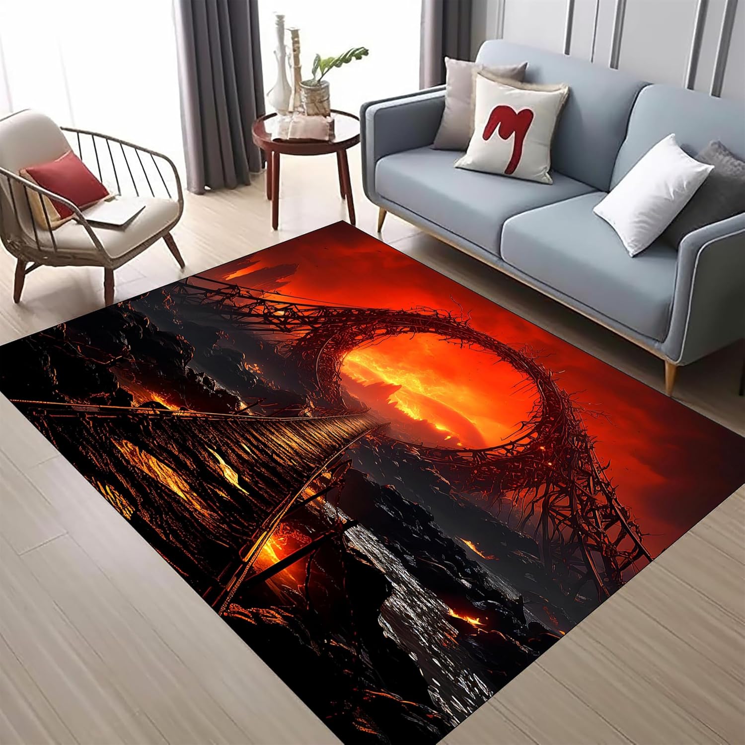 ๐ช Introducing the "Lava Rug" - where modern design meets volcanic vibes! With elements like lava rocks, obsidian, molten lava, burning planets, moons, hanging bridges, and tropical islands blended seamlessly with red and black hues, this rug adds a touch of novelty to any space.๐ช Crafted from premium polypropylene material, this rug is pet and baby-friendly, ensuring durability, colorfastness, no shedding, no creases, and easy maintenance. Perfect for bedrooms, nurseries, living rooms, dining areas, daycares, and even lava-themed party decorations.๐ช At Lava Rug, we prioritize customer satisfaction and top-notch quality. If you need any adjustments to the size of your rug, feel free to reach out to us, and we'll take care of it promptly.๐ช Why choose our lava rug? Well, not only does it ship conveniently folded without leaving any creases when unfolded, but it also boasts high-quality material that's odorless and safe for families with babies and pets.Maintenance tips:๐ฅ Wash separately, avoiding soaking for more than 30 minutes.๐ฅ Machine wash or hand wash with cold water, gentle cycle.๐ฅ Do not bleach or expose to direct sunlight. Low-temperature drying is recommended. Hang to dry in a cool, shaded area.๐ฅ Upon receiving the product, unpack and air it out for a while to remove any packaging odors.๐ Please note that due to lighting and photography, there may be slight differences between the product images and the actual rug. But rest assured, the actual product will be even more impressive!๐ So, bring the floor to life with our Lava Rug - because who said lava can't be cozy and stylish at the same time? ๐๐ฅ #LavaRugAdventure #FloorIsLavaFun