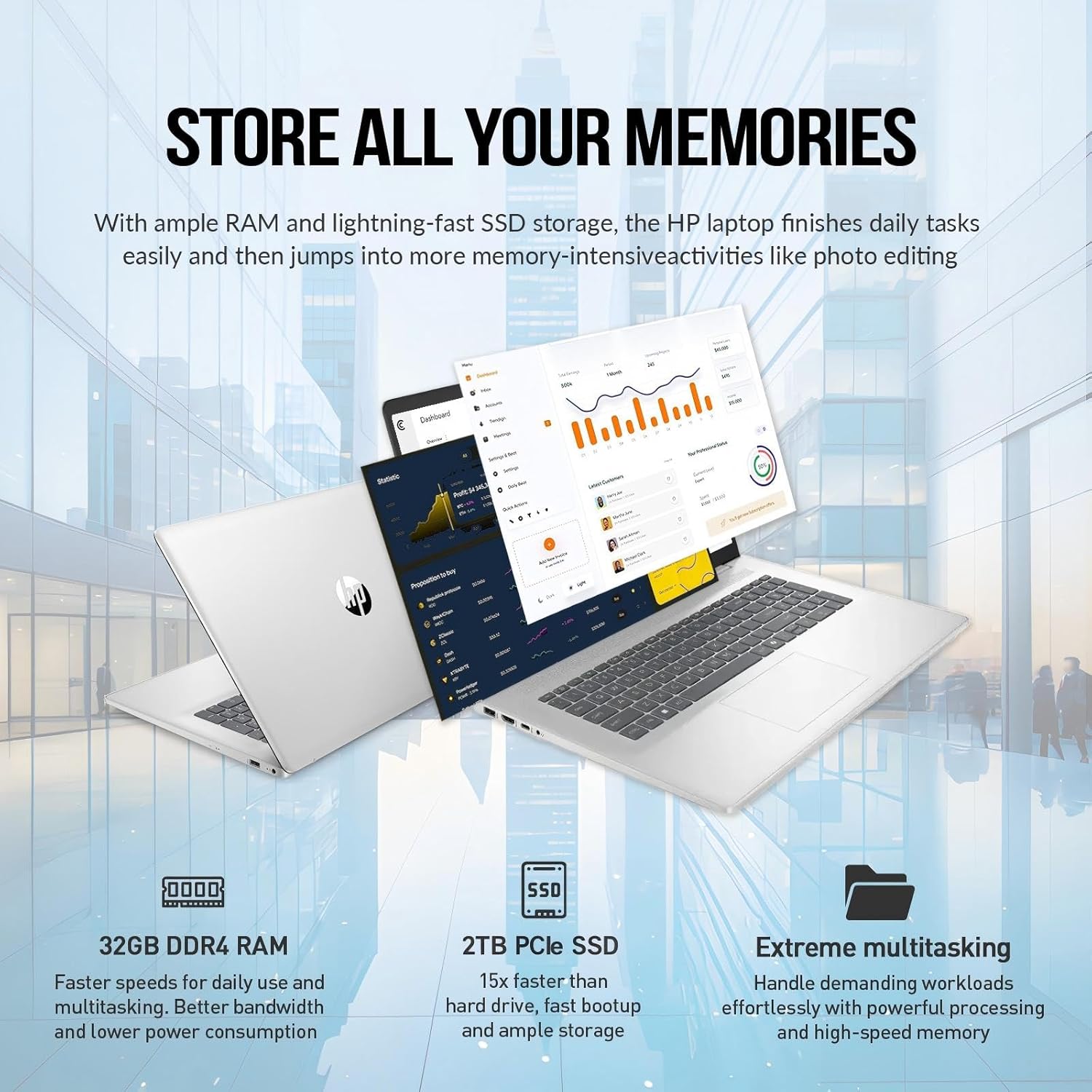 The HP 17.3-inch Laptop PC is about sustainability while blending performance and comfort. Get your hands on the HP Laptop 17 with Windows 11 Pro, ideal for business, school and college students, or home use. Experience reliable performance with an Intel i3 processor, fast Wi-Fi, ample storage, a bigger bolder picture-perfect display, amazing audio, and advanced collaboration technology. The hp notebook laptop is perfect for those on the go, with its 17.3-inch screen OS Windows 11 Pro 64-bit for business and work – elevate every workstyle and productivity with AI-powered breakthroughs and immersive workflows CPU Intel Core i3 processor (up to 3.8GHz, 8 cores, 8 threads) - a dynamic processor for superior multi-tasking performance Memory & Storage 32 GB DDR4 RAM - easy multitasking, effortless browsing and streaming 2 TB PCIe NVMe M.2 SSD - fast bootup and ample storage Display 17.3" HD+ (1600 x 900), anti-glare, narrow bezel, 250 nits, Enjoy vibrant, crystal-clear images Graphics Intel UHD graphics - stunning visuals and excellent performance Ports Wi-Fi 6+Bluetooth 5.3 5Gbps signaling rate 1x USB-C (data transfer) + 2x USB-A HDMI 1.4b Webcam HP True Vision 720p HD camera with AI-noise removal, privacy shutter and dual array digital microphones. Enjoy face-to-face video chats in vibrant clarity and cinematic HD Audio with B&O-tuned stereo speakers Included A Premium Accessory Suite for productivity Premium Design Full-size keyboard, numeric keypad Slim, sleek natural silver design. Easily portable even for a 17.3” hp computer laptop