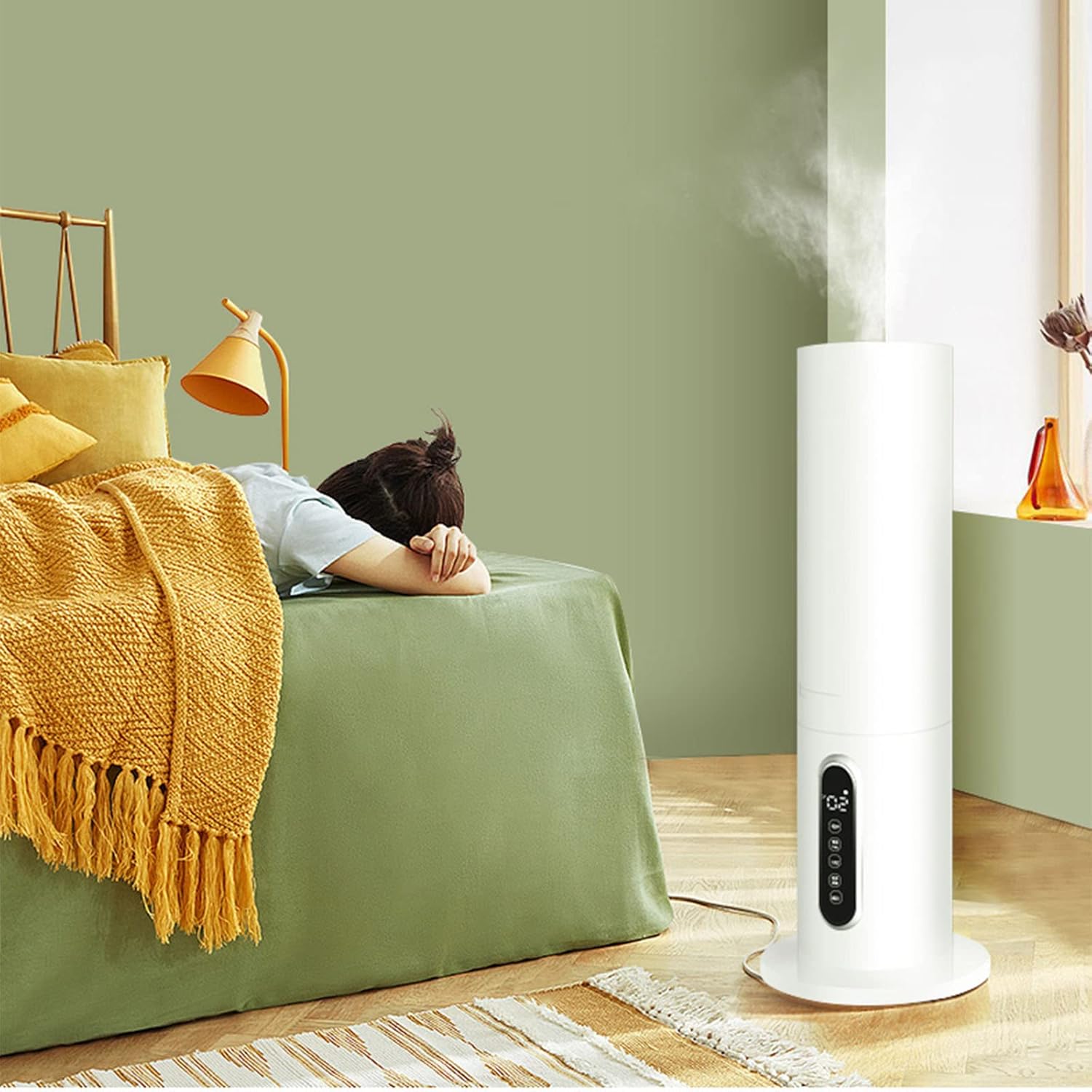 Product features CONSTANT SMART HUMIDITY Built-in humidistat accurately detects the humidity in your room. Auto adjusts to your preset humidity level. LED display will turn off on sleep mode. Low noise level will not disturb your relaxation, learning, working and sleeping. 3 ADJUSTABLE MIST LEVELS 3 mist level settings to switch between output make it easy to adjust the mist speed to your preference and provide free breathing. EASY ACCESS TO REFILLING The top fill design allows you to easily open it to add water to the tank. You don't even need to take out the tank to refill it, makes filling up a breeze. You can also fill the tap water directly. Product Information. Product Name: Smart Humidifier. Product capacity: 6L. Product power: 28 W. Product net weight: 2 kg. Use area: 40㎡. Product size: 22 x 22 x 58 cm. Product material: ABS. Power supply mode: rechargeable. Voltage: 100-240V universal. Mode of operation: touch. Number of fog outlets: one. Humidifier classification: humidification. Applicable object: Household Water tank capacity: 4.1L (inclusive)-6L (inclusive). Whether to support timing function: Yes. Packing list 1 x humidifier. 1 x user manual