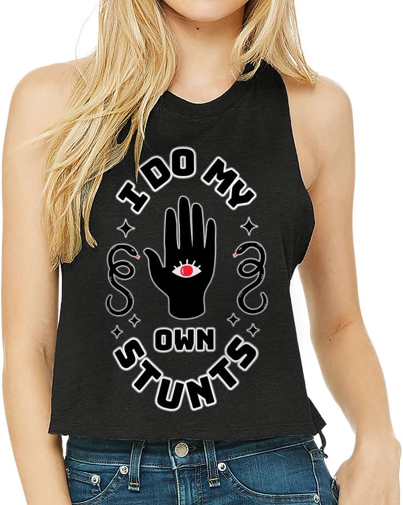 Cute and flattering I Do My Own Stunts Racerback Cropped Tank is suitable for most indoor or outdoor activities, such as gym, yoga, running, hiking, beach or relaxing around the house. Pair Hamsa Hand with your favorite sports bras, especially strappy ones, and high-waisted leggings, then you will enjoy cool and comfortable exercise throughout the summer.