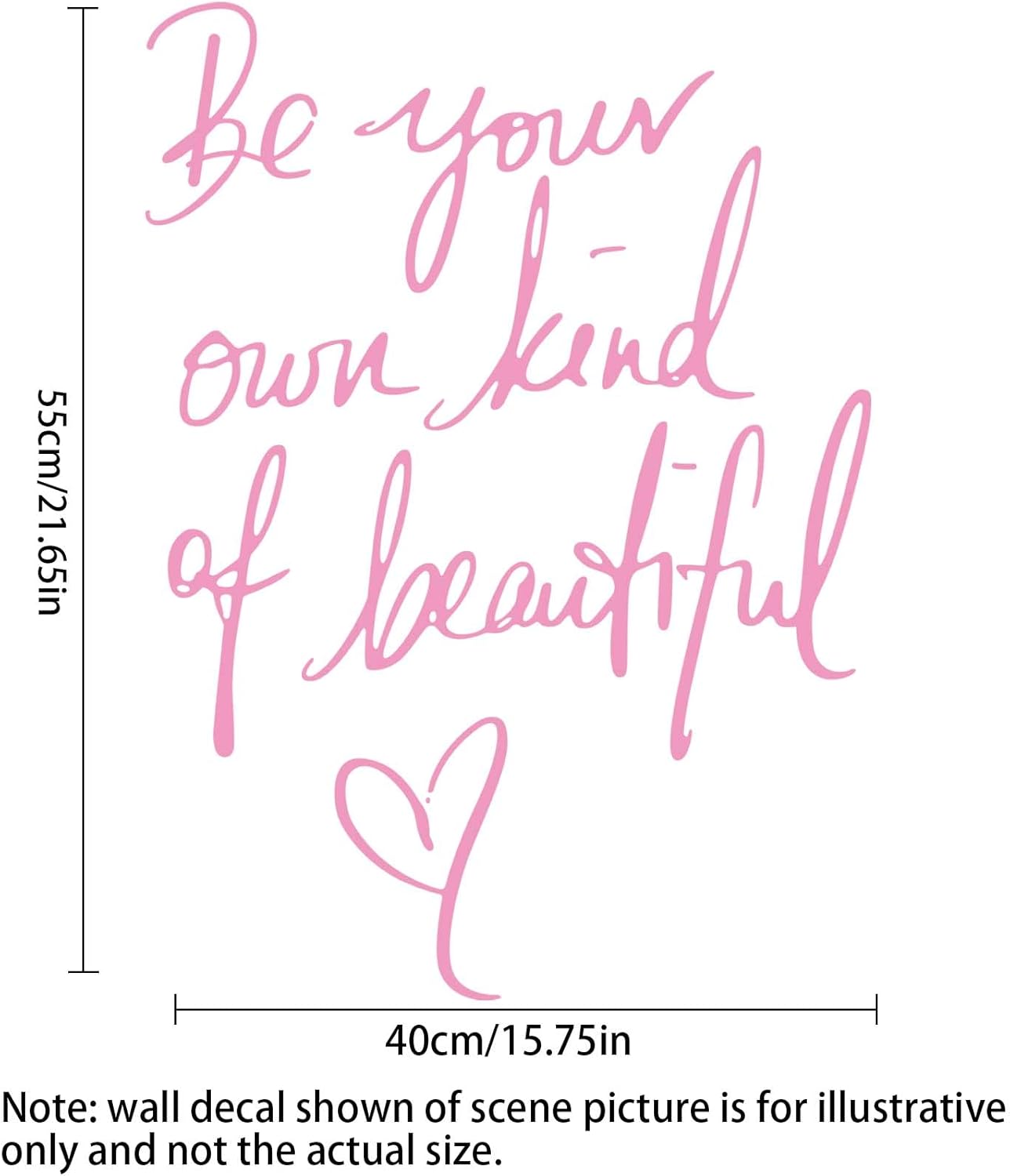 What's included: 1 pcs Be Your Own Kind of Beautiful Quotes Vinyl positive affirmation stickers Specification: Material: PVC Size: 15.75 x 21.65 inch (40 x 55 cm) Color: Black wall stickers for bedroom Quote: “Be Your Own Kind of Beautiful” Apply suggestion: Choose a smooth surface where you want to apply the sticker. Make sure that the surface is clean and dry. You can use a soft cloth or credit card to press the decal to smooth out any wrinkles. Image is not of actual scale. How to install: Follow the instructions to peel and stick the product onto a smooth and flat surface: 1: Peel off the transfer film and cover the transfer film on the vinyl wall decal, then scrape it again and again. 2: Peel off transfer film from the paper sheet and stick it on the wall (door / car / furniture / window ), scrape again. 3: Peel off the transfer film from decal, done. Our peel and stick decal stickers include easy step by step instructions on how to effortlessly apply the vinyl. About products: Die cut vinyl,durability,waterproof,general can keep 5-8 years. It is very easy to apply. It can be directly attached to the walls of the living room, bedroom, kitchen, glass,and so on. They are waterproof and lasting.Wall decals are one of the latest trends in home decor. The warm words on the wall decals can inspire you to live a positive life and bring warmth energy into your life. You can beautify your living space in just a few minutes! this decal is a gift for friend or family who enjoy decorating their homes.Without much effort and cost you can decorate and style your home. Our service: If you have any questions about our product, contact us via email and we will do our best to provide the best solution for you.
