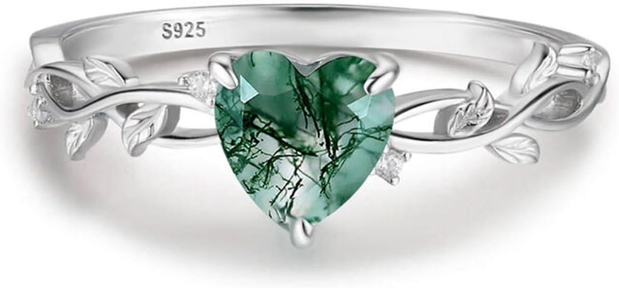 1、eulia Midsummer Night Pansy flower Moss Agate engagement ring, a kite-cut moss agate floats like a forest relic, its dendritic veins mapping secrets of ancient woodlands. 2、The Moss Agate engagement ring band unfurls into pansy petals, each engraved with wing-like filigree that mimics fireflies mid-dance. 3、No stark metals distract—just the stone’s organic haze and petals that tighten slightly when cold, as if remembering roots buried deep. 4、For those who wear their vows like whispered folklore, this Moss Agate engagement ring binds earth’s patience to sky’s whimsy.Jewelry Maintenance and Precautions:1、Often clean it with a soft-hair brush or cloth to make it keeps stunning and often looks like new.2、Keep it dry and please remove your Jewelry before bath or swim to prevent jewelry case alkali products.3、When not wearing, be sure to thoroughly dried and stored in the original package or a cloth pocket.Basic Information:Stone Size:6*9 mmNumber of Primary Stone:1/0.76 ctStone Shape:Kite, Round, Stone Size:0.8,1,1.5,1.2,1.5 mmNumber of Side Stone:32/0.422 ctStone Color:Diamond White, Peridot Green, Green, Weight:3.4 gWidth:2 mmHeight:4.8 mmThickness:1.2 mmMaterial:925 SilverPlating Color:Silver