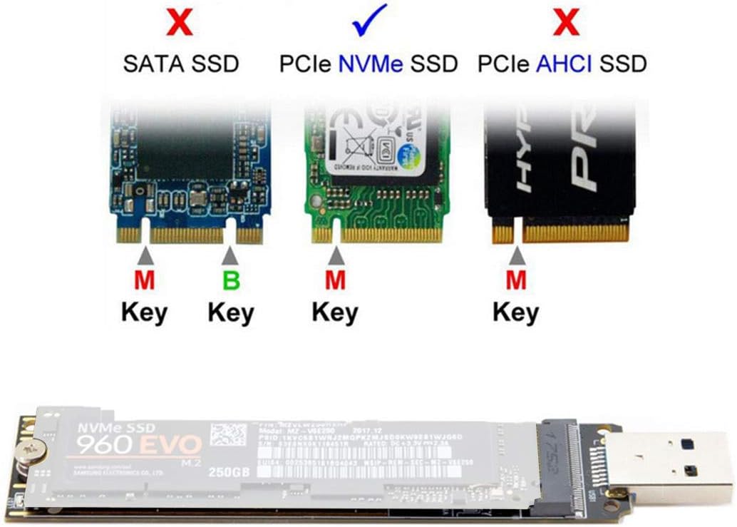 The item included one PCBA Work for M-key NVME SSD. Not work for B-key or B/M-key SATA SSD. Fit 80mm nvme NGFF M.2 SSD The NGFF SSD is not included. NVME's four advantages: 1. Performance has several times improvement 2. Can greatly reduce the delay 3. Can greatly reduce power consumption under working conditions 4. SSD's IOPS capability will also be greatly improved With Case: Name: USB3.1 Type A to PCI-E SSD M.2 NVME mobile hard disk box Model: MSA7780 Function: USB interface to read PCI-E SSD M.2 nvme hard disk through this mobile hard disk Product parameters Product Name: nvme ssd to USB3.1 type-A in-line hard disk box Support USB2.0 and 3.0 interface. Shell: aluminum alloy design, compact and easy to carry Support: Support various pci-e protocols M.2 nvme solid state drive.(M.2 nfgg not supporting pci-e AHCI and SATA protocols) Size:115mm*29mm*9mm Package: Hard disk box x1 Cooling patch x1 Spare screw x1 Screwdriver x1 USB protective cover x1 Lanyard x1 Packing pp box x1 No case: This product is bare cards without a housing. Via USB port directly insert computer ,saves the trouble of removing the wiring of the case. Because NVME SSD generates a lot of heat when it works, the bare card design is more effective in heat dissipation. Product parameters Product Name: nvme ssd to USB3.1 type-A in-line adapter Support USB2.0 and 3.0 interface Shell: none Support: Support various pci-e protocols M.2 nvme solid state drive.(M.2 nfgg not supporting pci-e AHCI and SATA protocols) Accessories 1. Adapter card x1 2. Cooling silicone patch x1