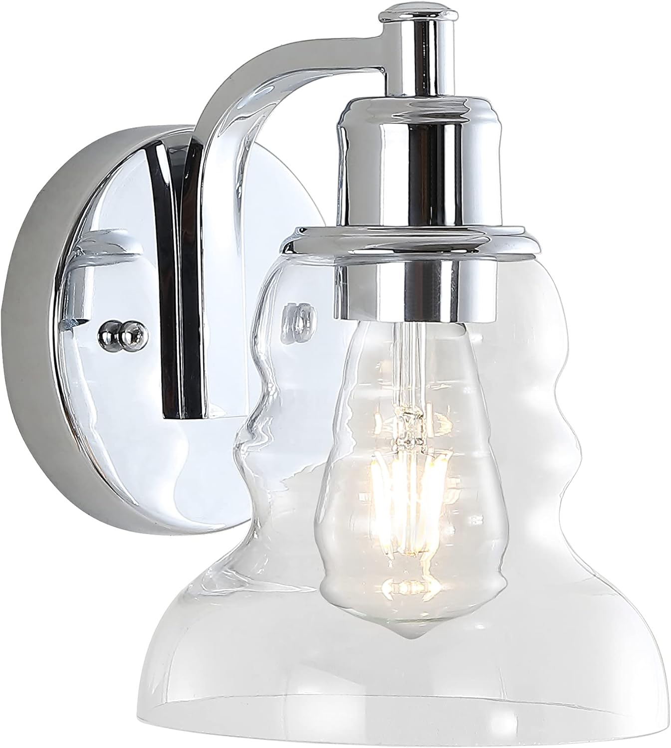 Elevate your urban interior with our modern take on a classic wall light. The industrial Edison-style LED bulb casts a warm glow, providing plenty of light. A clear glass bell shade adds elegant vintage style to your bath vanity, kitchen, hallway or entry.