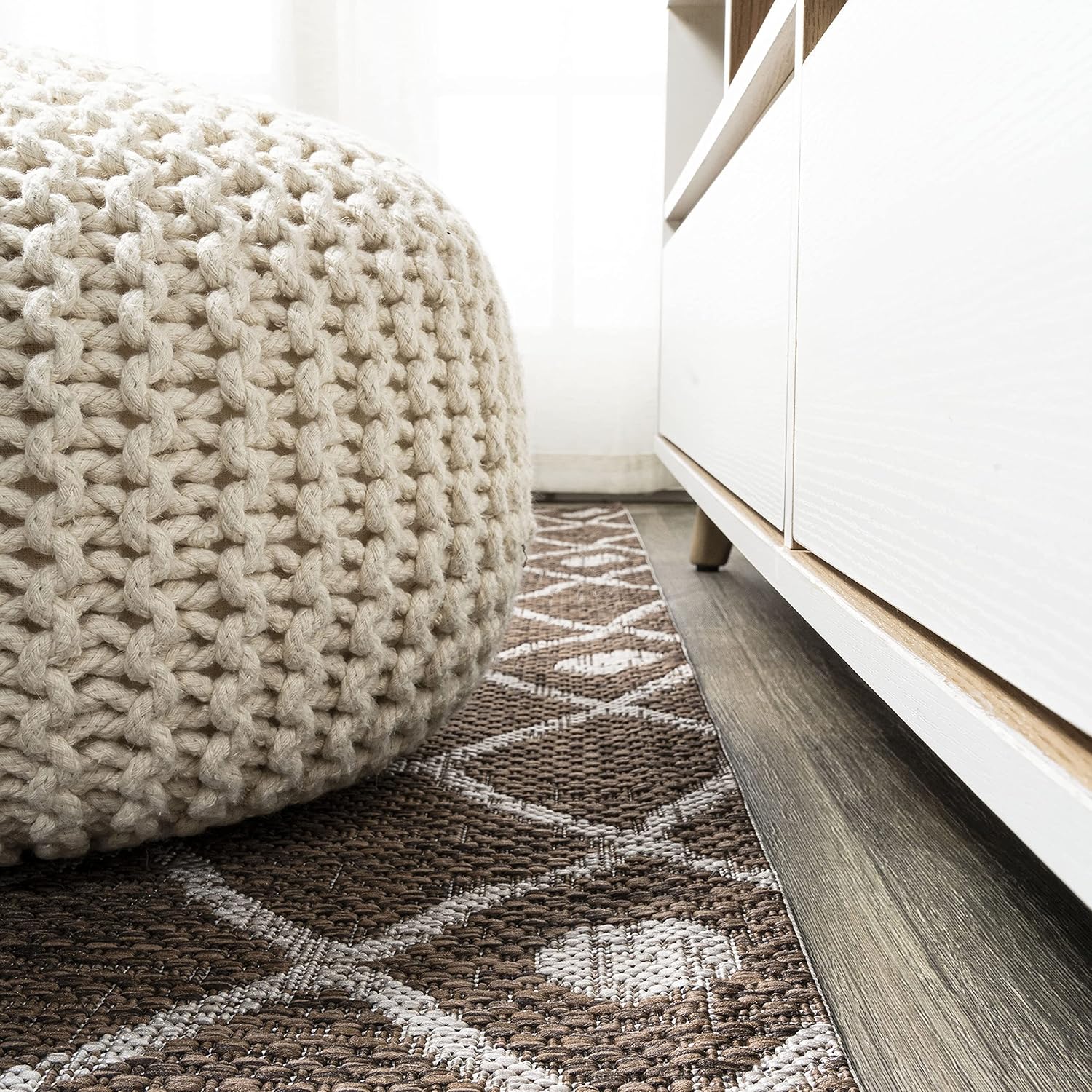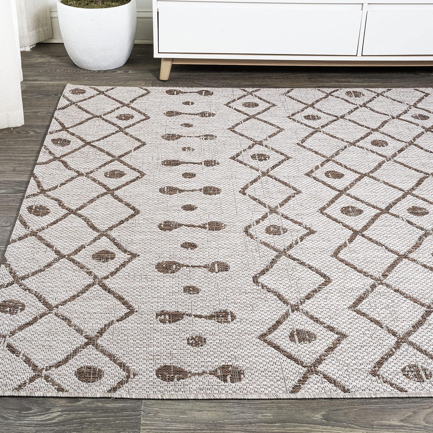 Moroccan influences abound in the geometric design of our tribal-inspired rug. The ornate diamond pattern has the handwoven look that adds a global chic touch. Add Bohemian flair to your living room, dining room, bedroom, kitchen or entry with this easy-care rug.