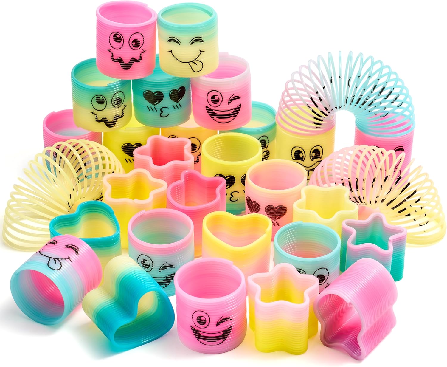 • COMPREHENSIVE SET. Our rainbow springs party favors includes 20 mini round face springs, 10 mini shaped springs. You will surely make a lasting impression with your guests and friends with these birthday or Halloween party goodie bag stuffers.