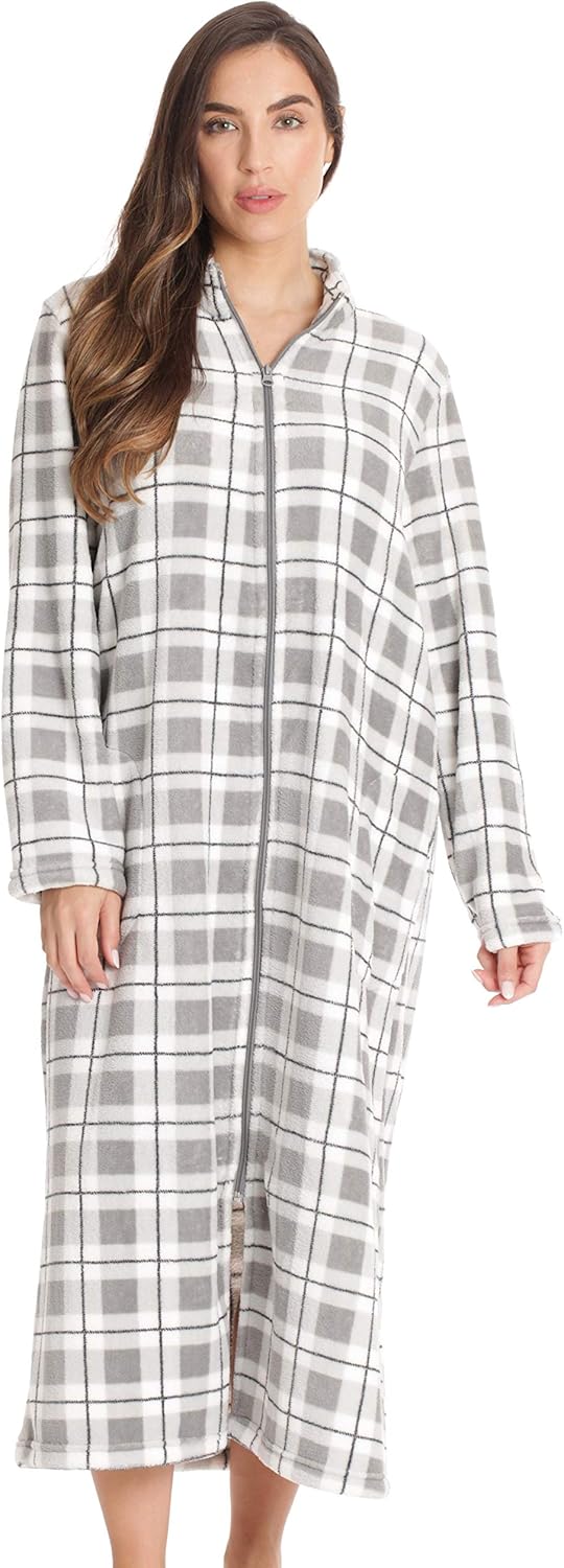 MAKE LOUNGING AN INCREDIBLY COZY AFFAIR Standout Comfort We just love giving you the comfiest and coziest clothing to lounge in! It’s one of our lives’ calling really. And this zippered lounger robe highlights our passion for plush. We’ve designed it using 100% polyester microfleece fabric that’s known for its supreme softness, and given it a loose-fitting cut for unhampered movement. Slip into it after a long day’s work, snuggle in it on the couch, or don it as a housedress when doing those chores and experience grin-worthy comfort all through. Lounging Made Stylish You might take a break, but we believe cuteness shouldn't! We’ve brought this plush lounger house dress to life with eye catching prints so you can flaunt your style. There are beautiful patterns to suit any taste. Choose between florals, plaids & winter prints for ladies who love their lounge wear with a splash of character. Here are more reasons to love this cozy lounger: - Comes with a full-length zipper for easy wear. - Comes in S-3X to fit the petite to the plus size. - Washes well without losing softness or color. - Two side pockets to store your phone & more. - Backed by a 100% customer satisfaction guarantee. Click ‘Add to Cart’ now for an extra-soft zip up lounger you’ll want to live in!