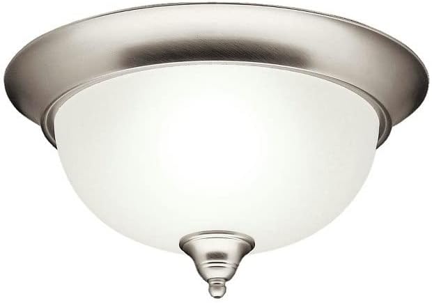 Product Description Utilizing the timeless Brushed Nickel finish with Etched seedy glass cover, this flush mount ceiling fixture is perfect for any room or hallway. Its 2-light design employs 60-watt (max.) bulbs, with the fixture measuring 13 ½in. in diameter with a body height of 7in.. From the Manufacturer Light Bulb:(2)60w A15 Med F Incand, Finish: Brushed Nickel Dover flush mount ceiling light.