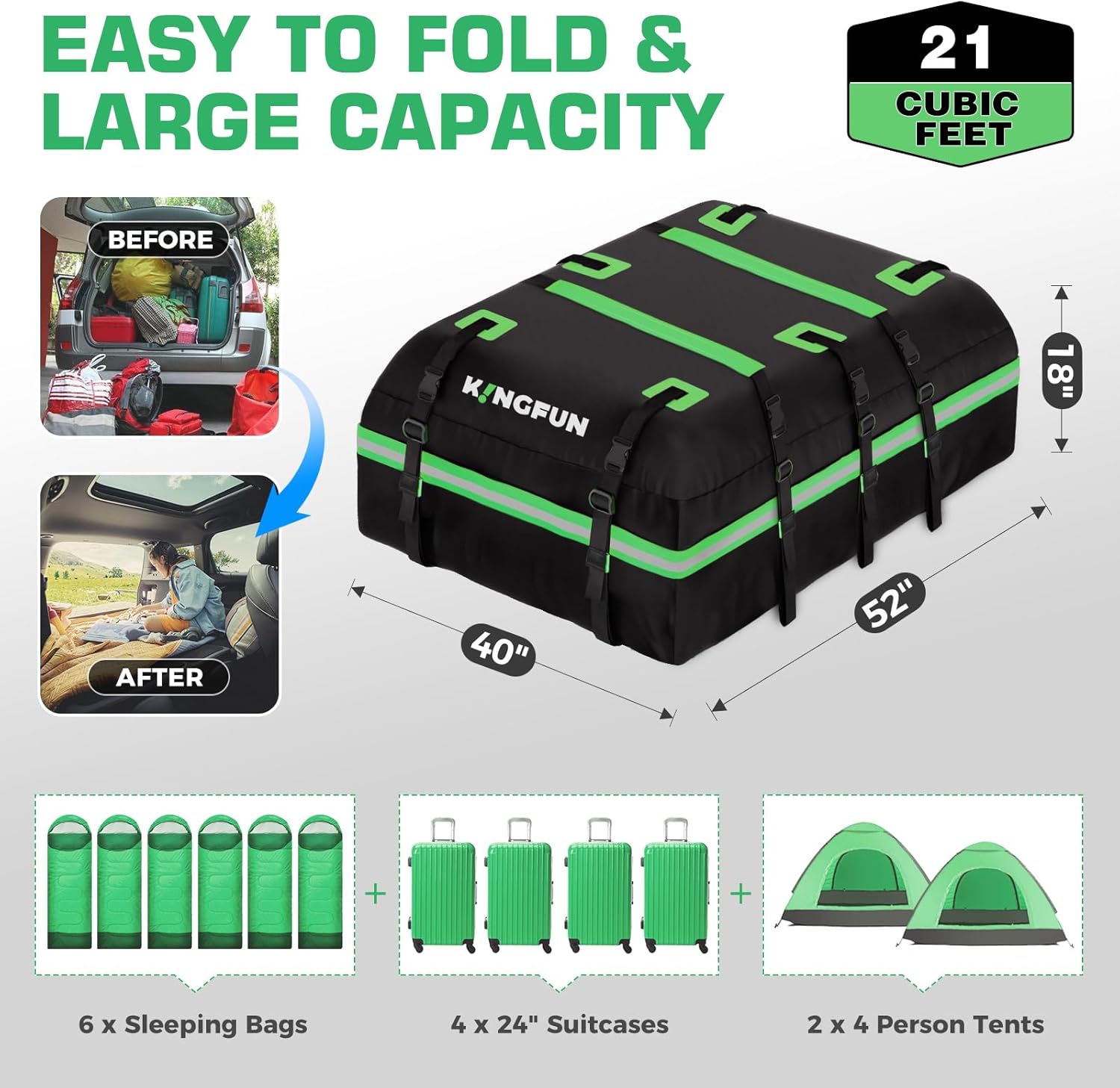 | Included Components | Anti-Slip Mat X 1, Car Rooftop Cargo Carrier Bag X 1, Door Hooks X 6, Lashing Straps X 2, Luggage Lock X 1 |