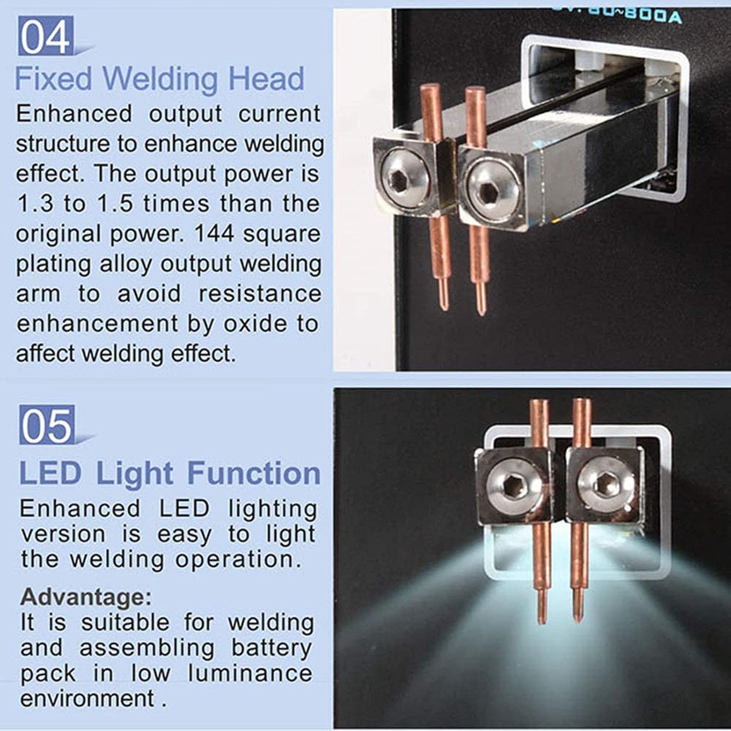 Whether you are engaged in electronic equipment maintenance, factory assembly line, battery production, technical school training, this spot welding machine can provide fast and accurate welding results! Features: 1. The welding tip has the function of LED light, which can be used for precise fixed welding. High-precision welding of six or three rows of batteries or single-cell batteries. Also provides fast battery welding. 2. Convenient to hold, double-click the solder pin to balance the spring pressure, and the solder joints are more balanced. Avoid flashover welding, realize one-handed operation, and the distance between welding points can be adjusted. 3. Compact body shape, combined with convenient handle; make it light and easy to move. Therefore, you can easily take it where you want. Specification: Voltage input: AC 110V/220V10V Primary current: 2A15A Welding current: 50A800A Welding pressure: 200g-700g 1 Pulse: 0.050.12mm 2 Pulse: 0.120.15mm Size: 140x245×200mm Net weight: 4.3kg Gross weight: 5.5kg Packing size: 215×370×310mm Notice: 1. Please use a wall socket to ensure stable power supply. 2. The rated current of the release can reach 40-63A. 3. Please adjust the pressure regulator to appropriate parameters to ensure the welding effect.