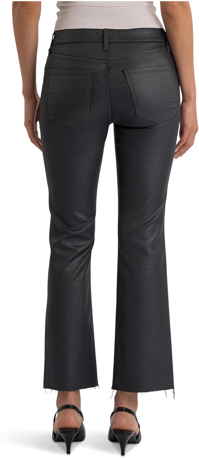 Flared with flair, the KUT from the Kloth Kelsey High-Rise Ankle Flare With Raw Hem Jeans offer a perfect mix of casual ease and modern edge. Designed with a flattering high-rise fit, they hug the hips and thighs before finishing with a cropped kick flare for a fresh take on a classic silhouette. The raw hem adds a touch of effortless style, making these jeans a versatile staple for any wardrobe. Bootcut silhouette. Zip-fly and buttoned closure. Belt loops through the waist. Five-pocket styling. 59% Modal, 40% polyester, 1% spandex. Machine washable.