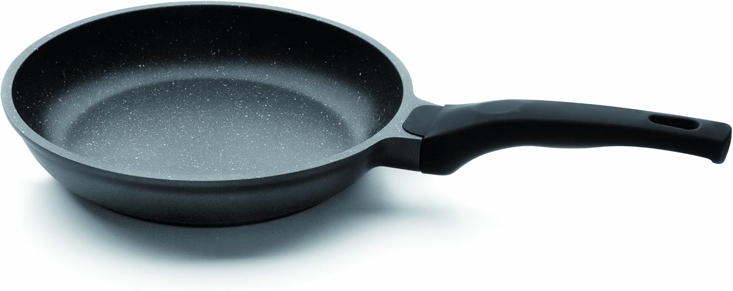 Product Description Easy to clean interior and exterior with its non-stick protection. Ergonomic silicone handles of high resistance 180ºC and heat insulators. Made from high quality material. Made in Spain. Set Contains: 1 x Cast Alum.Induc. Frypan Eco-Stone 24