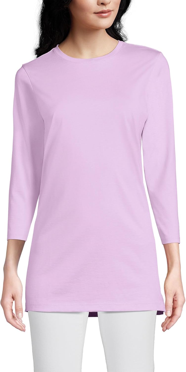 In need of a breathable super-soft and comfy layering tee to get you through the seasons? Look no further than the Lands’ End Women’s ¾ Sleeve Supima Cotton Crewneck Tunic. Made from top-tier American grown cotton Supima is a longer and stronger fiber that resists shrinkage pilling and wrinkles. Ideal for layering underneath sweaters jackets sweatshirts blazers fleece and puffy winter coats you can wear this long tunic just about anywhere during any season. Of course the loose relaxed fit and vibrant colors also make it a cute choice to wear alone with jeans leggings dress pants or a skirt for a day at the office or simply lounging around the house. Designed with your comfort in mind the jersey knit fabric and 100% cotton guarantee means that this will be one of the softest shirts you own. And the variety of colors and patterns ensure it to be one of the most stylish! Lands' End creates and manufactures quality clothing to last a lifetime of comfort and style.
