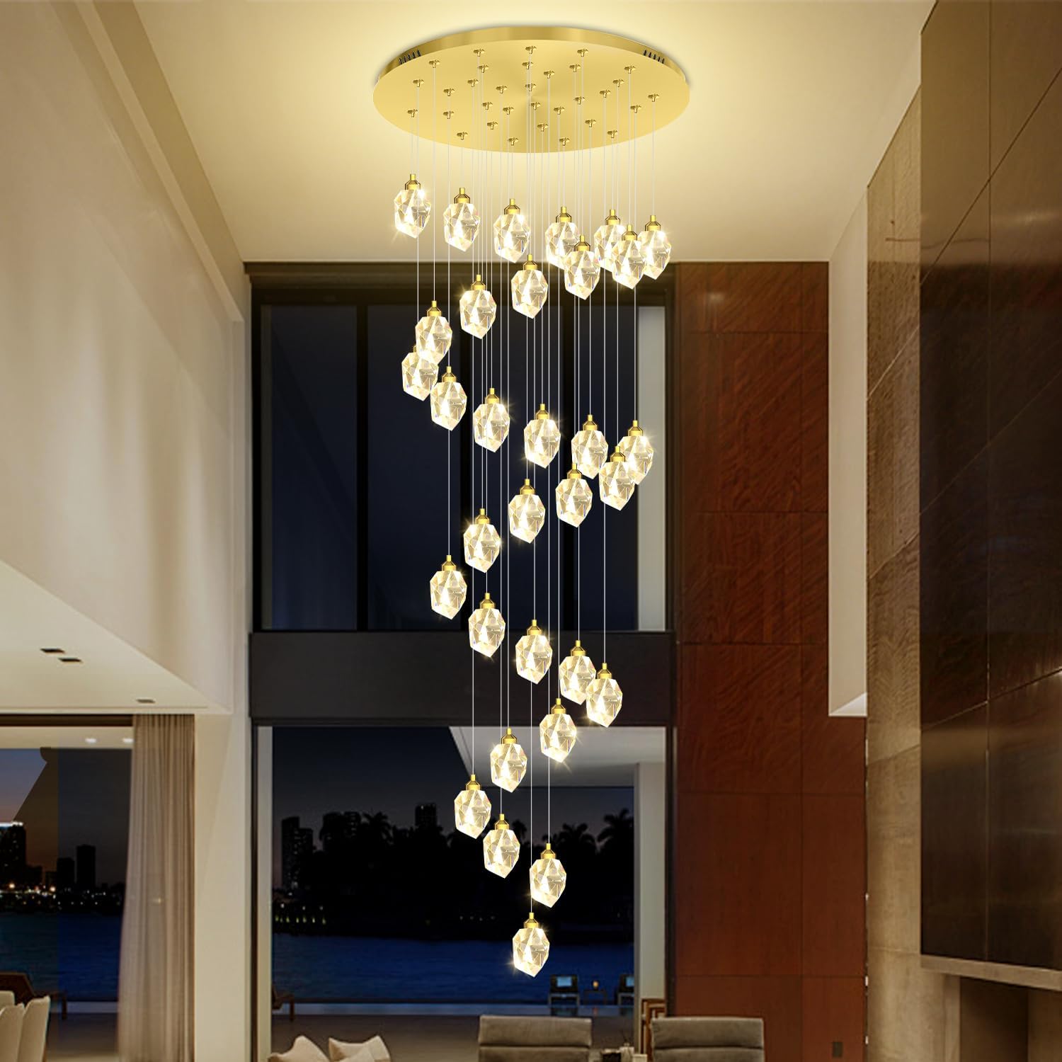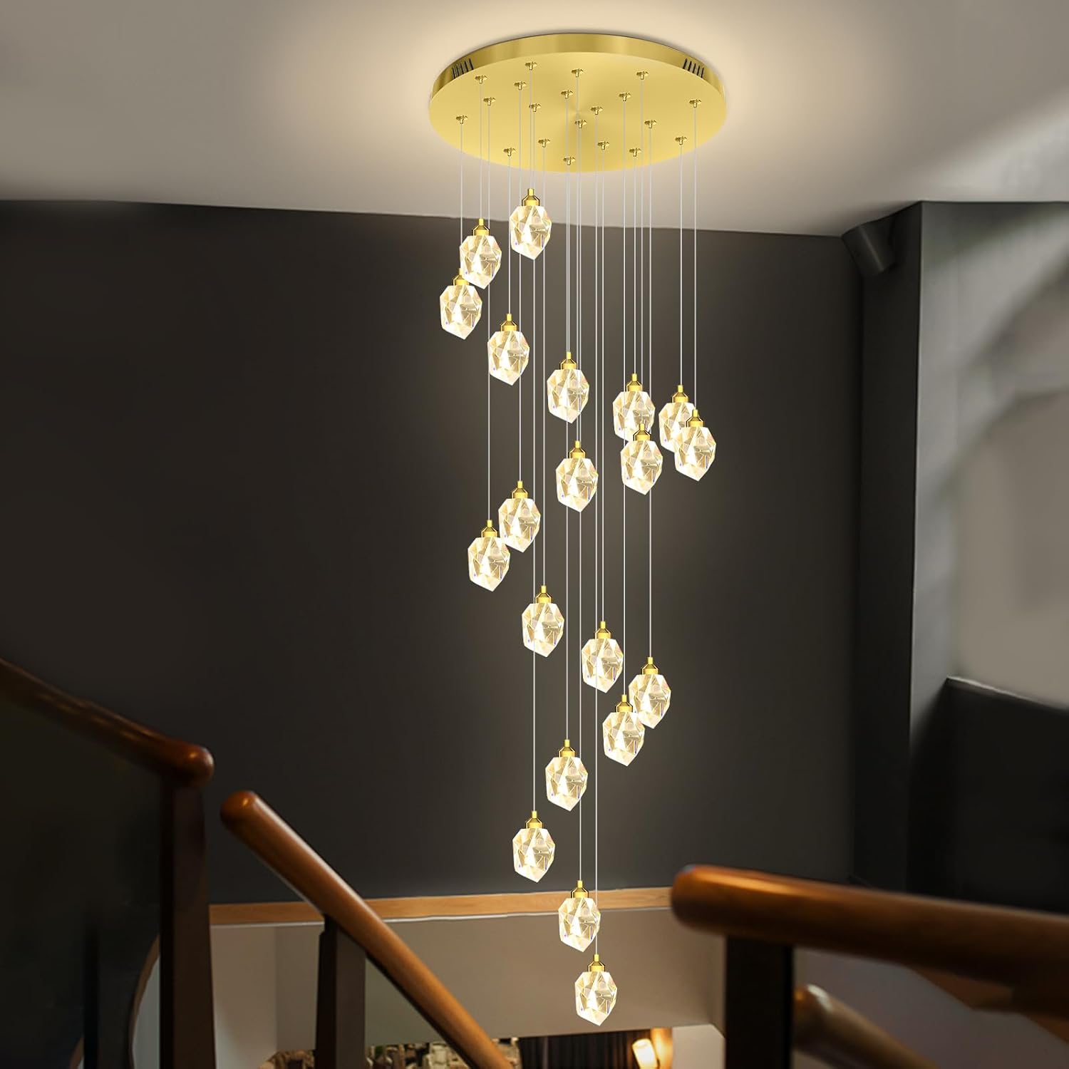 • ✨【High Ceiling Chandelier Modern Led Chandelier Design】The modern and minimalist led crystal teardrop chandelier design is being timeless. Polished chrome stainless steel ceiling canopy, 20 elegant clear ice crystal spiraling downward,stainless steel design makes this crystal chandelier richer in refraction surface, K9 crystal ball polyhedron cut, as dazzling as diamond, you will love the glow of this lamp.