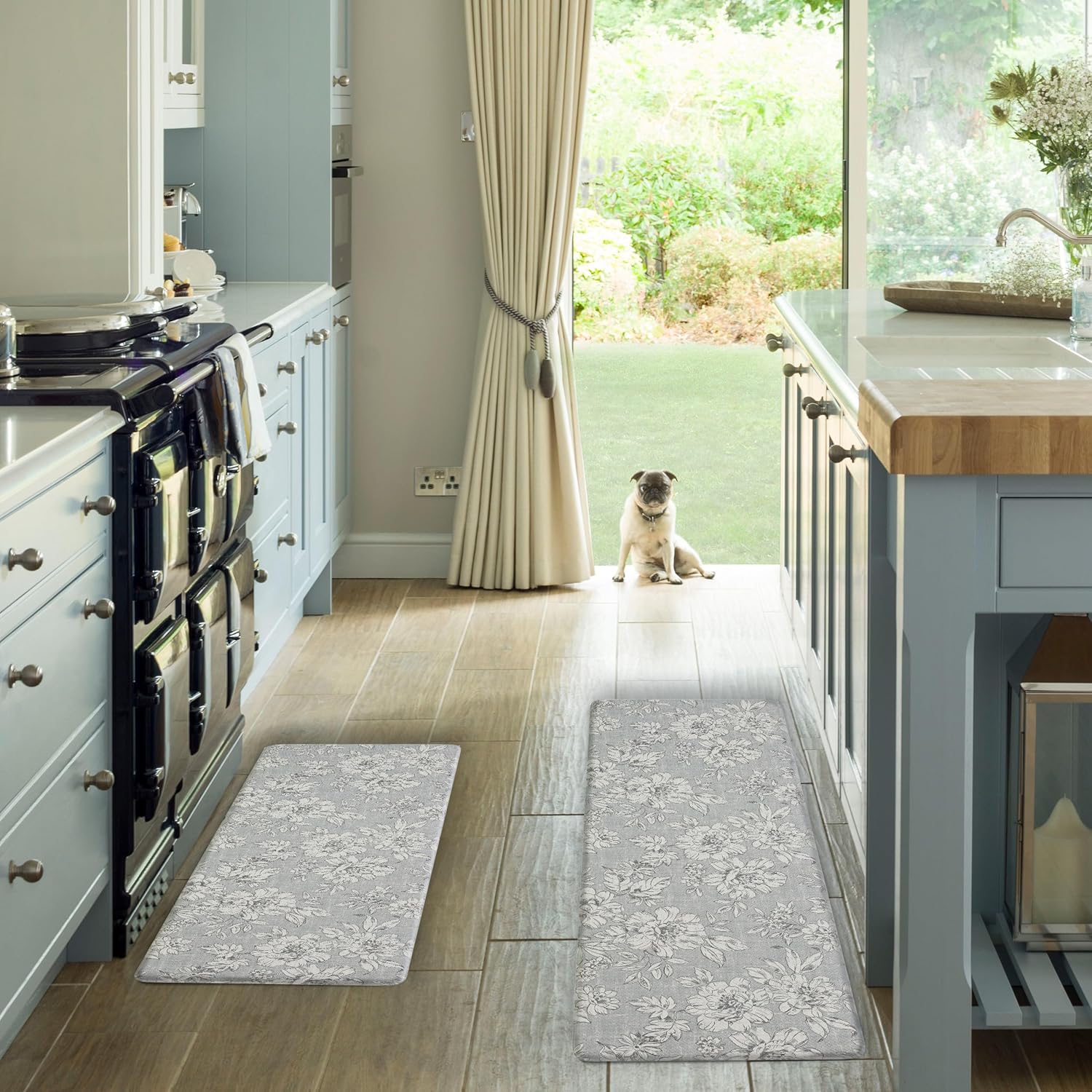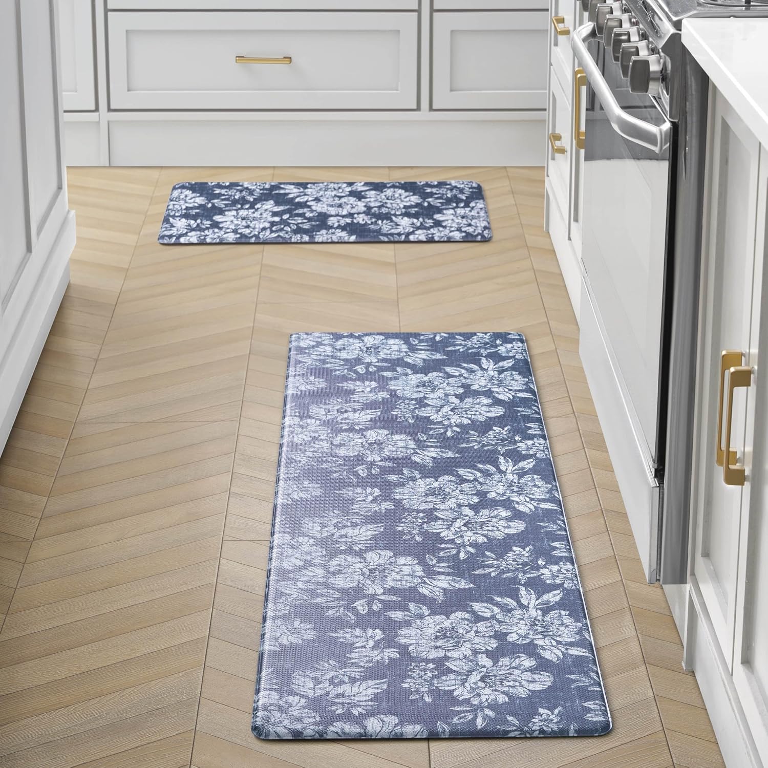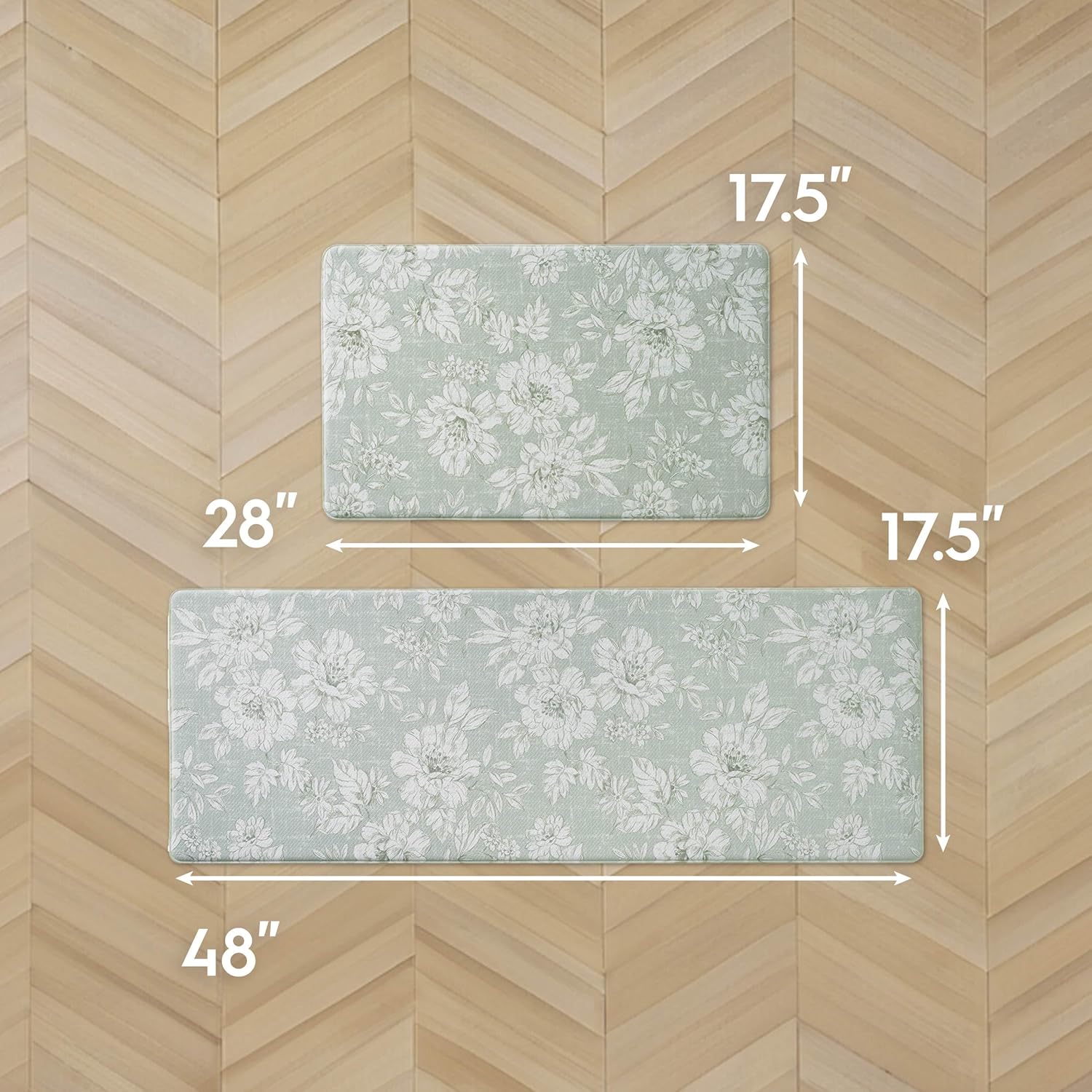Give your kitchen a fresh and functional update with the Laura Ashley Anti-Fatigue Wellness Mats. Available in many sizes as well as a 2-Piece Set. The anti-fatigue cushioning construction promotes better posture, circulation, and muscle conditioning while cooking. Durable, high-quality PVC construction is long-lasting. This mat can be placed anywhere in your kitchen, laundry room, or even under your desk for enhanced comfort when working. The built-in, fade-resistant, slip-resistant covering with skid-resistant backing makes cleaning easy and provides protection for your mat. Wipe clean using a damp cloth and a mild detergent. Always place on a dry surface before use. Imported.
