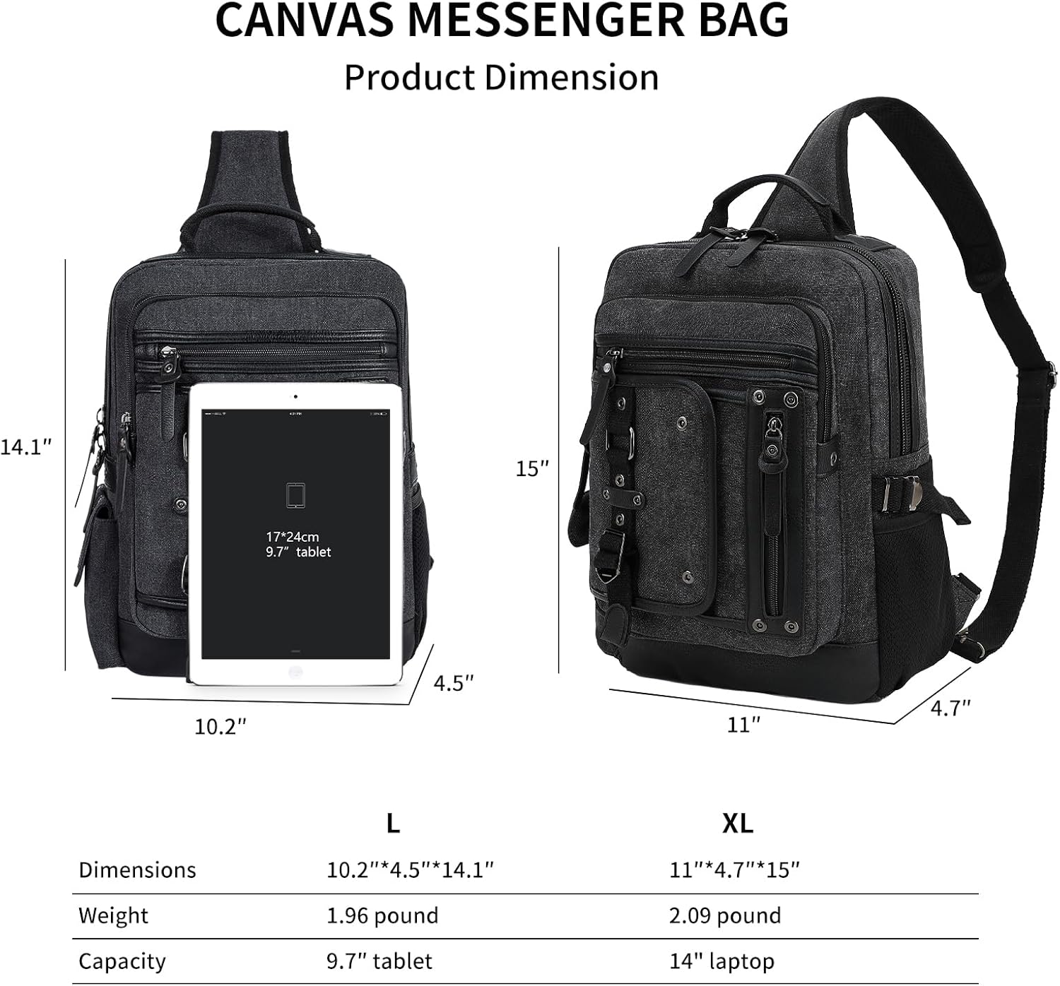 The Atlas Sling: Your All-in-One Companion for Modern LifeTired of bags that can't keep up? The Atlas Sling is the ultimate crossbody backpack for men, masterfully blending vintage-inspired style with rugged durability. Crafted from premium canvas and reinforced with PU leather accents, this bag is built to last.Intelligent Organization: Never waste time searching again. This large sling bag features a dedicated, padded compartment for your 14-inch laptop and over 10 specialized pockets for everything else—from your wallet and keys to a water bottle and tablet. Stay perfectly organized for work, school, or travel.Superior Comfort: The breathable, airflow back panel and fully adjustable padded shoulder strap wick away moisture, keeping you cool and dry. Carry it as a comfortable crossbody or a classic shoulder bag, perfect for all-day use.Unmatched Versatility: Seamlessly transition from your daily commute to a weekend adventure. Its timeless design is ideal for the office, university, a coffee shop, or a casual outing. It’s the thoughtful, practical gift he’ll love—an exceptional Father's Day choice.Upgrade your everyday carry. Get the Atlas Sling, the one bag that does it all.