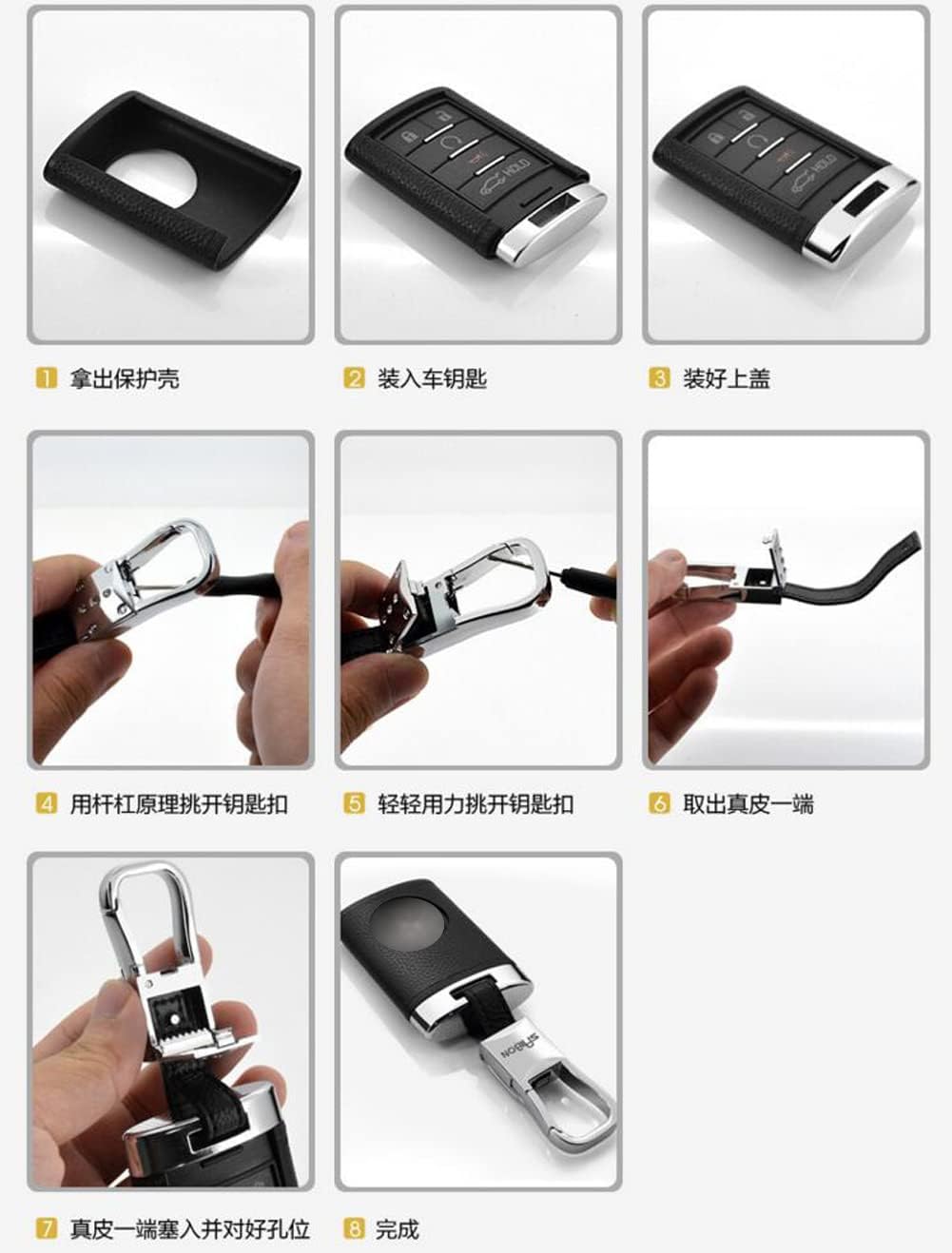 Exactly same as pictures, 4 colors key case for your choice, each color comes with key chain. Made of premium ABS with good quality real leather wrapped, luxury looking; Precise mould and cut, good fitment; Come with a exquisite chrome key chain; No signal reducement;. Packaged in good quality hard box, it's great choice of a gift; Every case tested before ship.