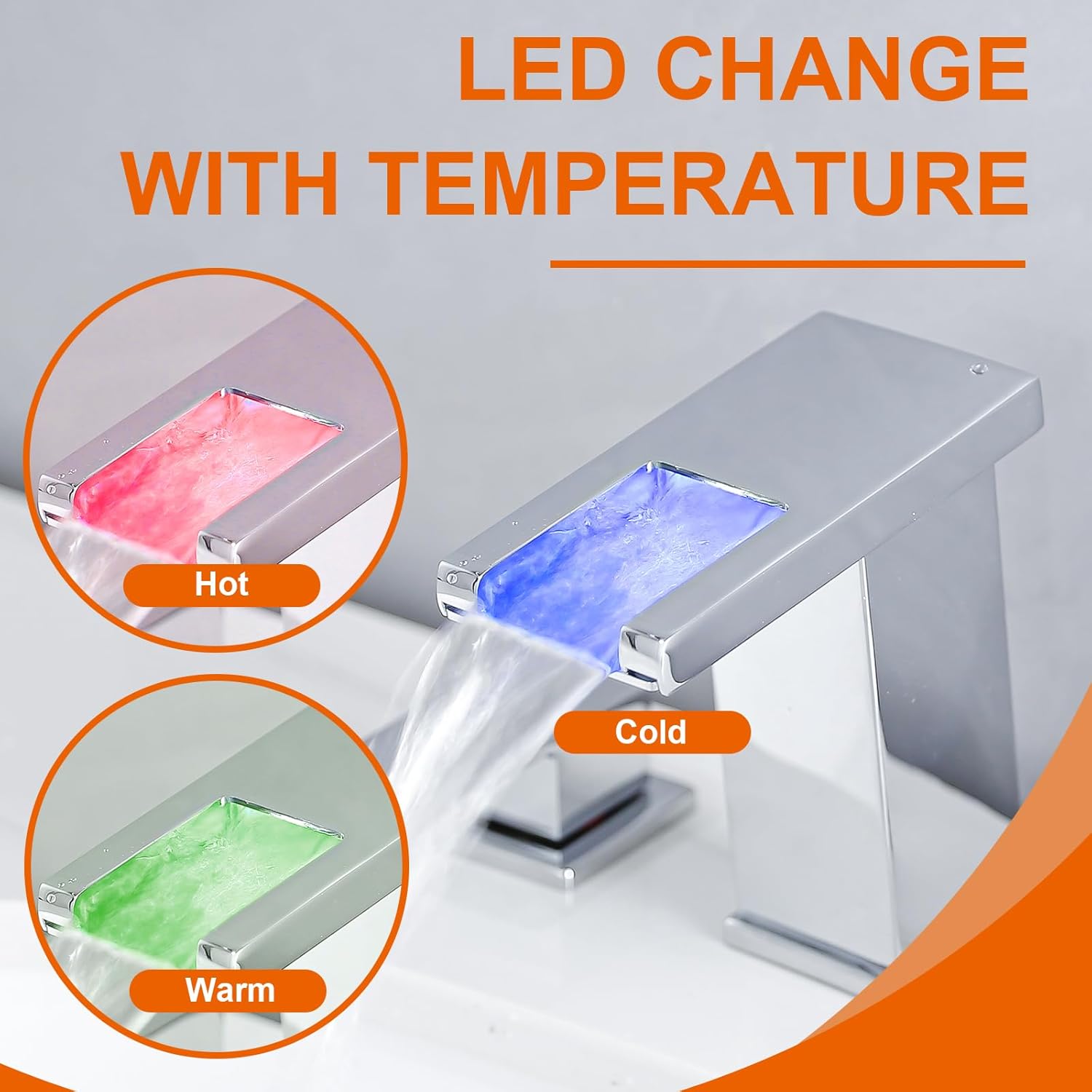 | Model Name | Chrome LED Bathroom Faucet 3 Hole Widespread 8 Inch |
