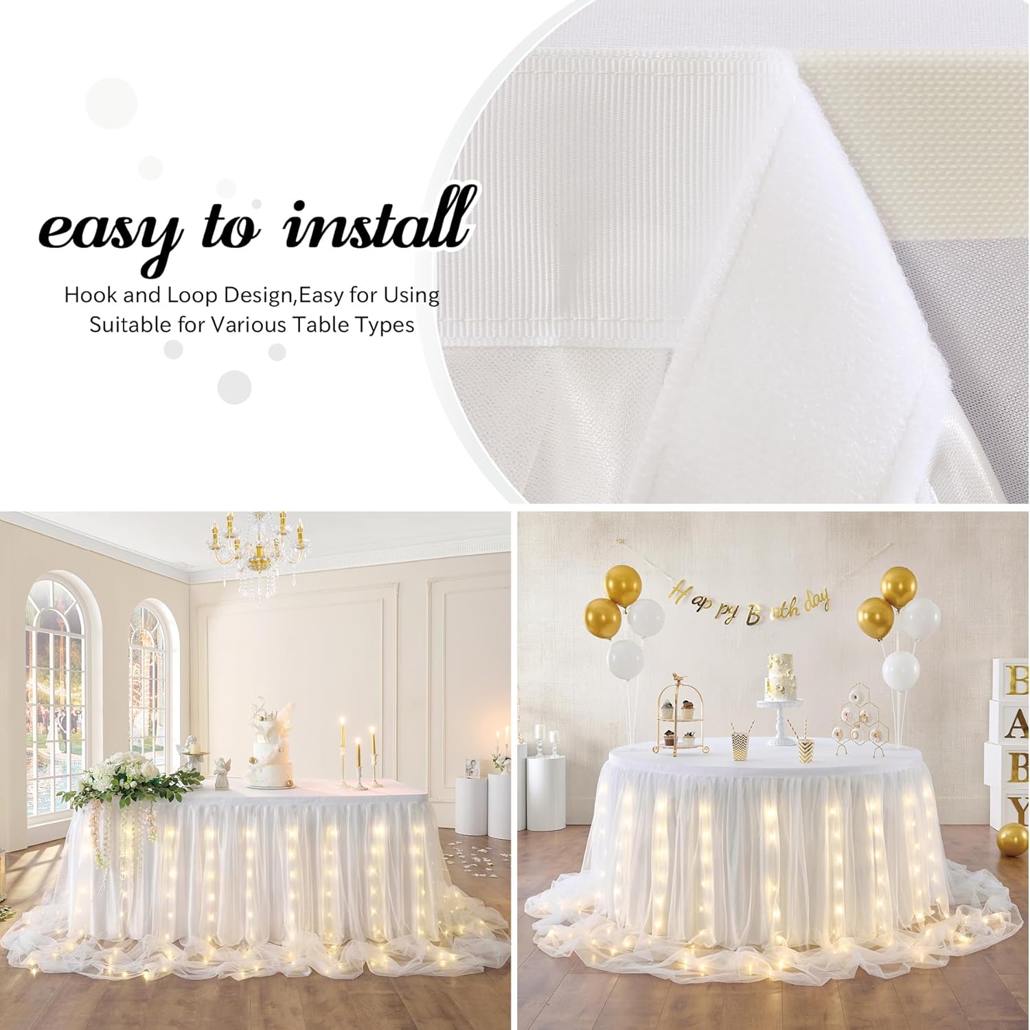 | Special Feature | baby sign decoration, folding table skirts, frill table skirt, light table skirt, reception table skirt |