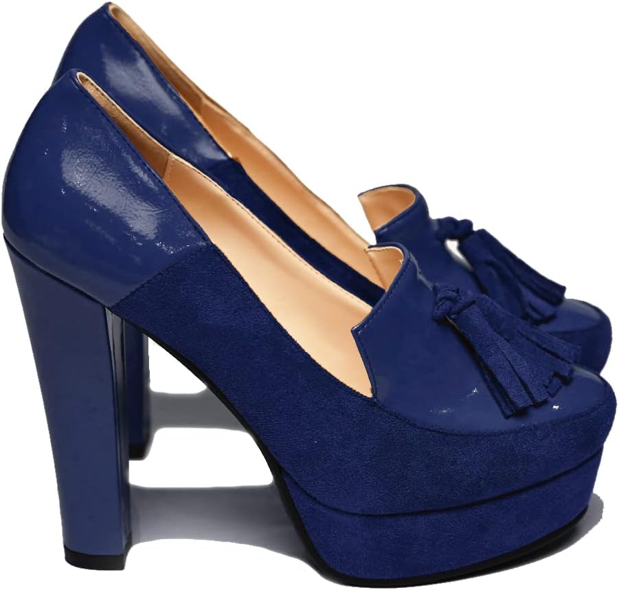 | Style Name | Chunky Block High Heel Fringed Pumps |