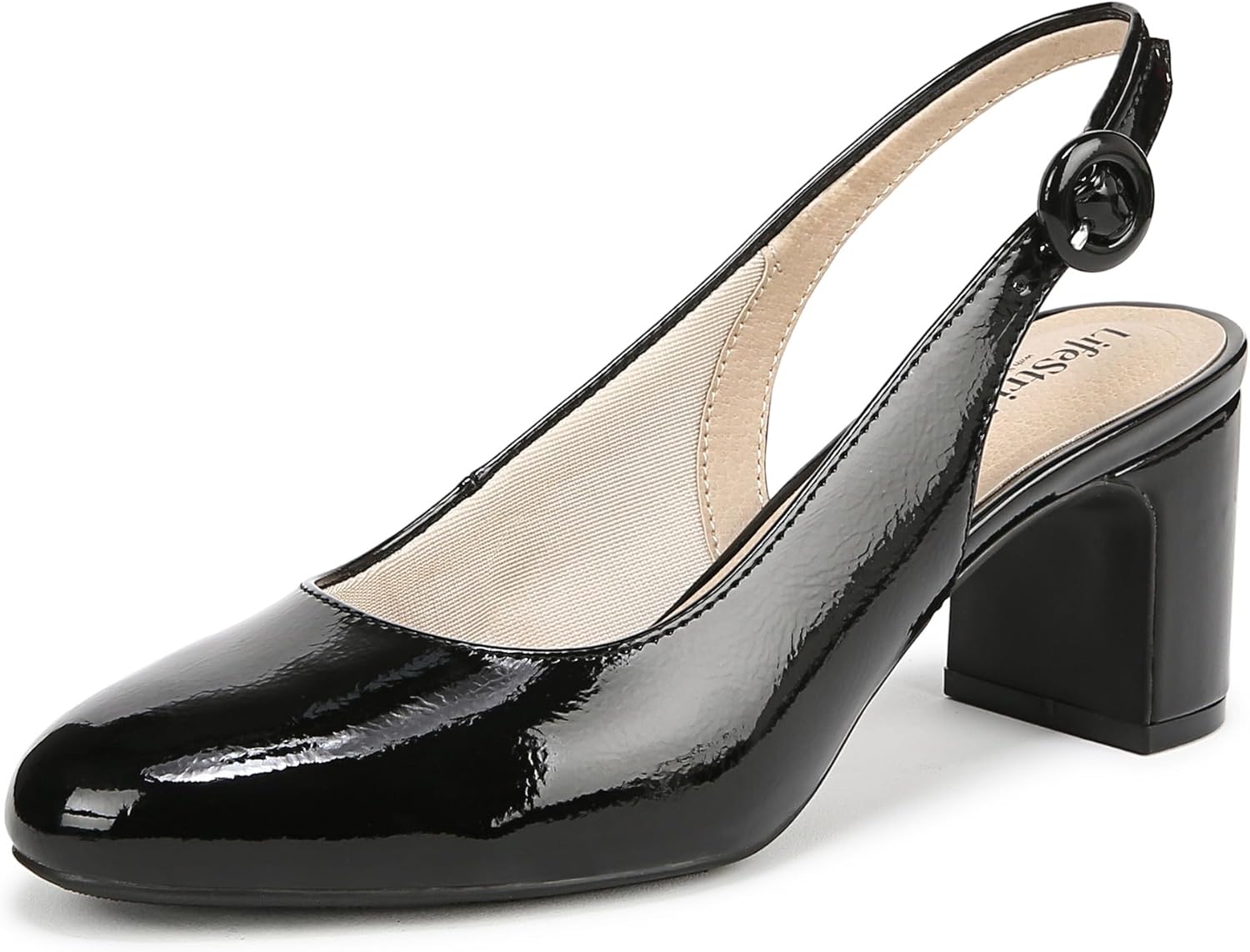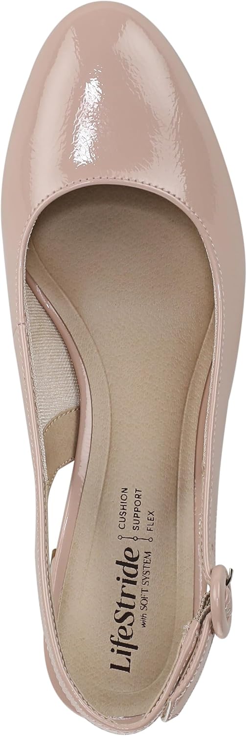 Now trending, always classic, these women’s slingbacks go with everything and never go out of style. Slingbacks for women designed with faux leather, an almond toe, and heel strap with covered adjustable buckle for the perfect fit. Trusted Soft System® comfort technology for unmatched cushion, support, and flexibility in every pair. Traction sole for extra stability. Just Right Height 2 3/8 inch block heel.
