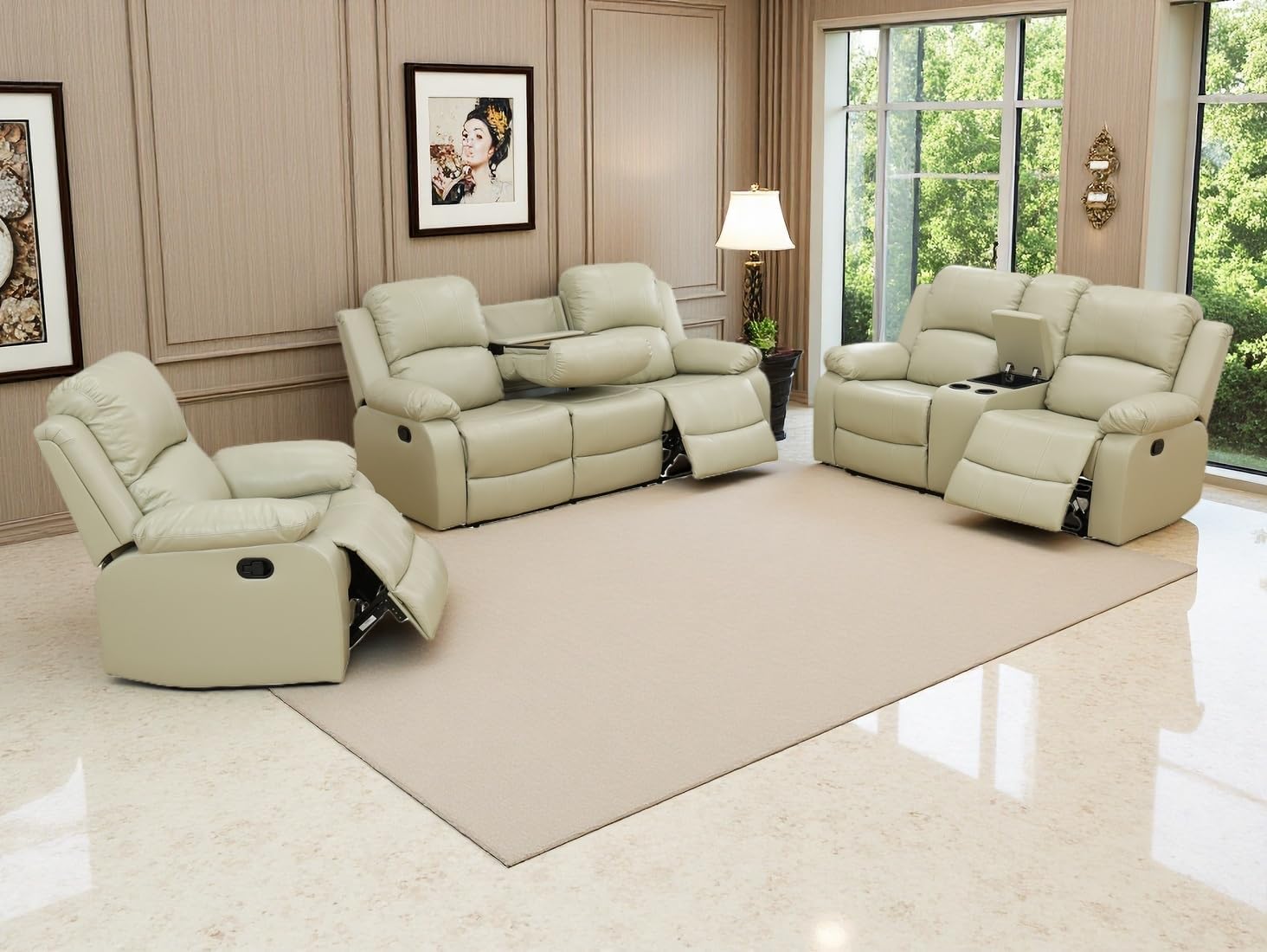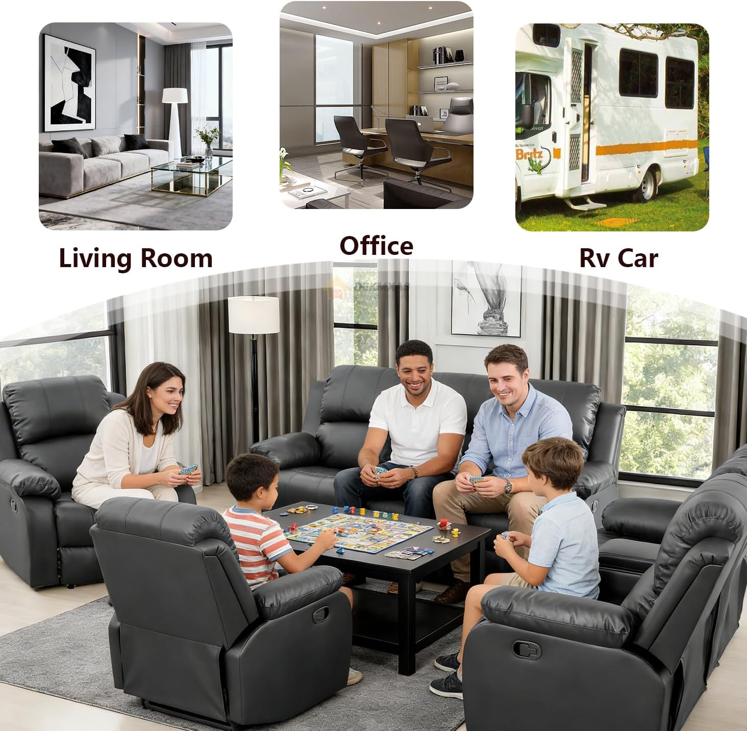 | Additional Features | Reclining, Split-back Design, Footrest, Cupholders, Storage Console, Flip-down Table |