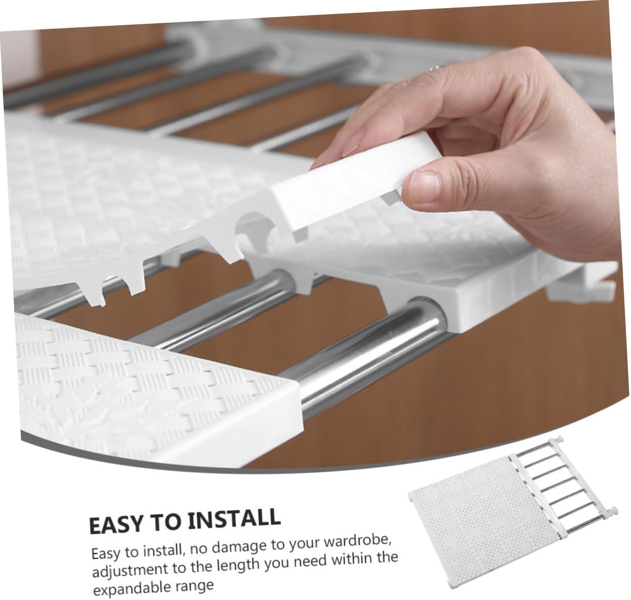 Package Include 1 x Wardrobe Divider Features -Material: High carbon steel + ABS Storage Shelf -Color: White Wardrobe Rack - material, strong bearing for placing many clothes Storage Rack Shelf. -You can use it anywhere you wanted to add extra storage space Wardrobe Dividers. -Multifunctional design, you can put clothes or shoes on the layer, and clothes on the under layer Home Wardrobe Shelf. -Great for anyone with no DIY skills or for people who rent and can not drill walls etc Shelf Organizer for Home. -Designed stylish appearance and workmanship make it more unique Expandable Shelf.Goods InformationClosets Shelf Divider The rack is adjustable and retractable, you can adjust the rack according to your needs.Wardrobe Dividers Choose an available size according to your actual need.Wardrobe Shelf These storage shelves are made of materials.Adjustable Storage Rack range of sizes available to fit spaces
