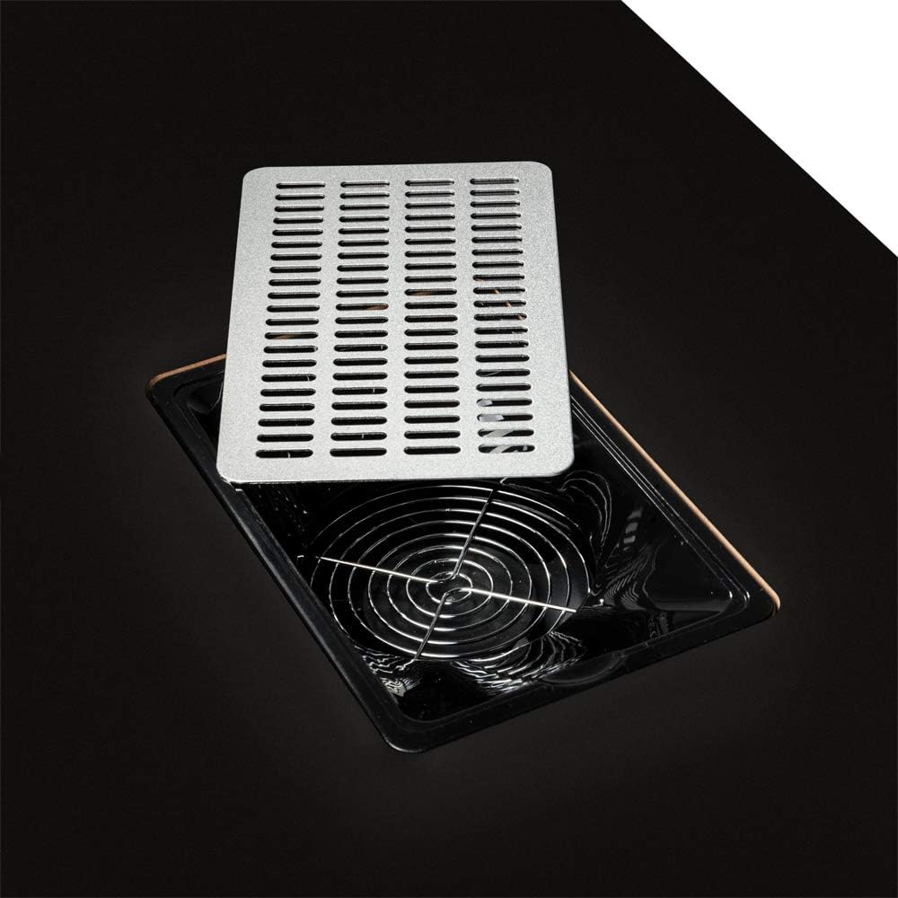 Specifications:1. Material: Fibre Board & Iron & PP Drawer2. Color: Black3. Dimensions: (43.31 x 16.93 x 29.13)" / (110 x 43 x 74)cm (L x W x H)4. Side Cabinet Dimensions: (10.63 x 24.8 x 15.35)" / (27 x 63 x 39)cm (L x W x H)5. Individual Drawer Dimensions: (13.19 x 9.06 x 2.17)" / (33.5 x 23 x 5.5)cm (L x W x H)6. Vent Dimensions: (7.87 x 4.92)" / (20 x 12.5)cm (L x W)7. Hand Pad Dimensions: (13 x 3.94 x 1.97)" / (33 x 10 x 5)cm (L x W x H)8. Weight: 57.32 lbs / 26 kg9. LED Lamp Type: USB PortPackage Includes:1 x Manicure Table1 x LED Lamp1 x Hand Pad1 x User Manual