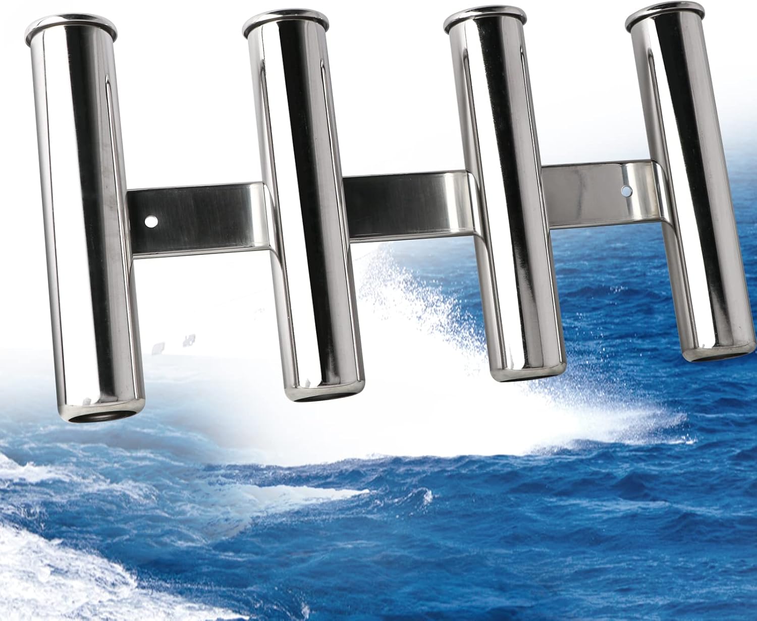 Marine Boat Fishing Rod Holder (Holds 4 Rods) 316 Stainless Steel 4 rod rack Boat Rod Holder for Fishing Gimbal pin rod stopper Solid construction - no moving parts Rolled top and bottom - no sharp edges