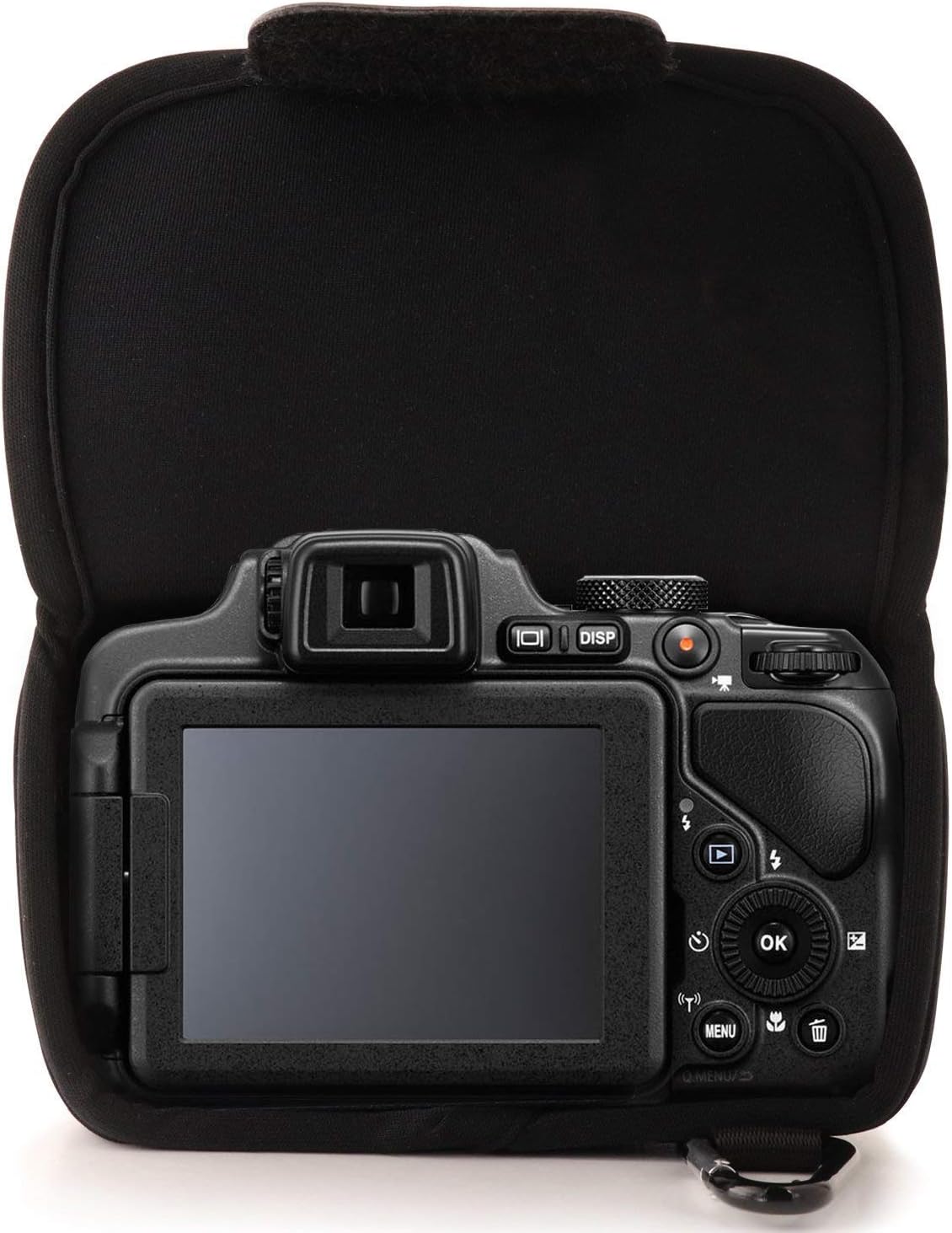 Product Description MegaGear "Ultra Light" Neoprene Camera Case Bag with Carabiner for Nikon COOLPIX P600, Nikon COOLPIX P610 (Black) (Model: MG048) Set Contains: Camera Case, with Carabiner