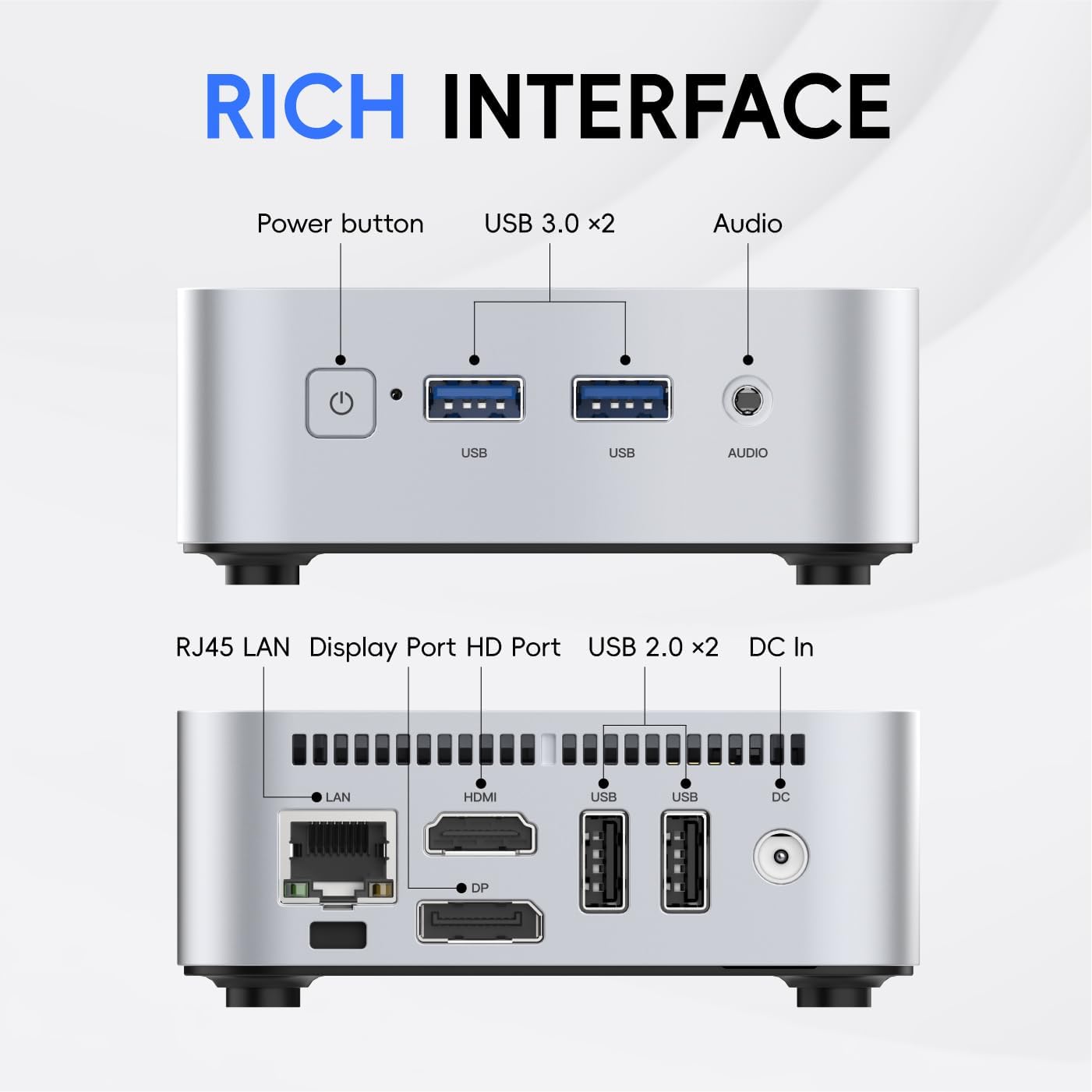 | BuiltIn Media | HDMI Cable & User Manual, MegaPC Twin Lake N150 Mini PC, Power Adapter & Cable VESA Mount with Screws |
