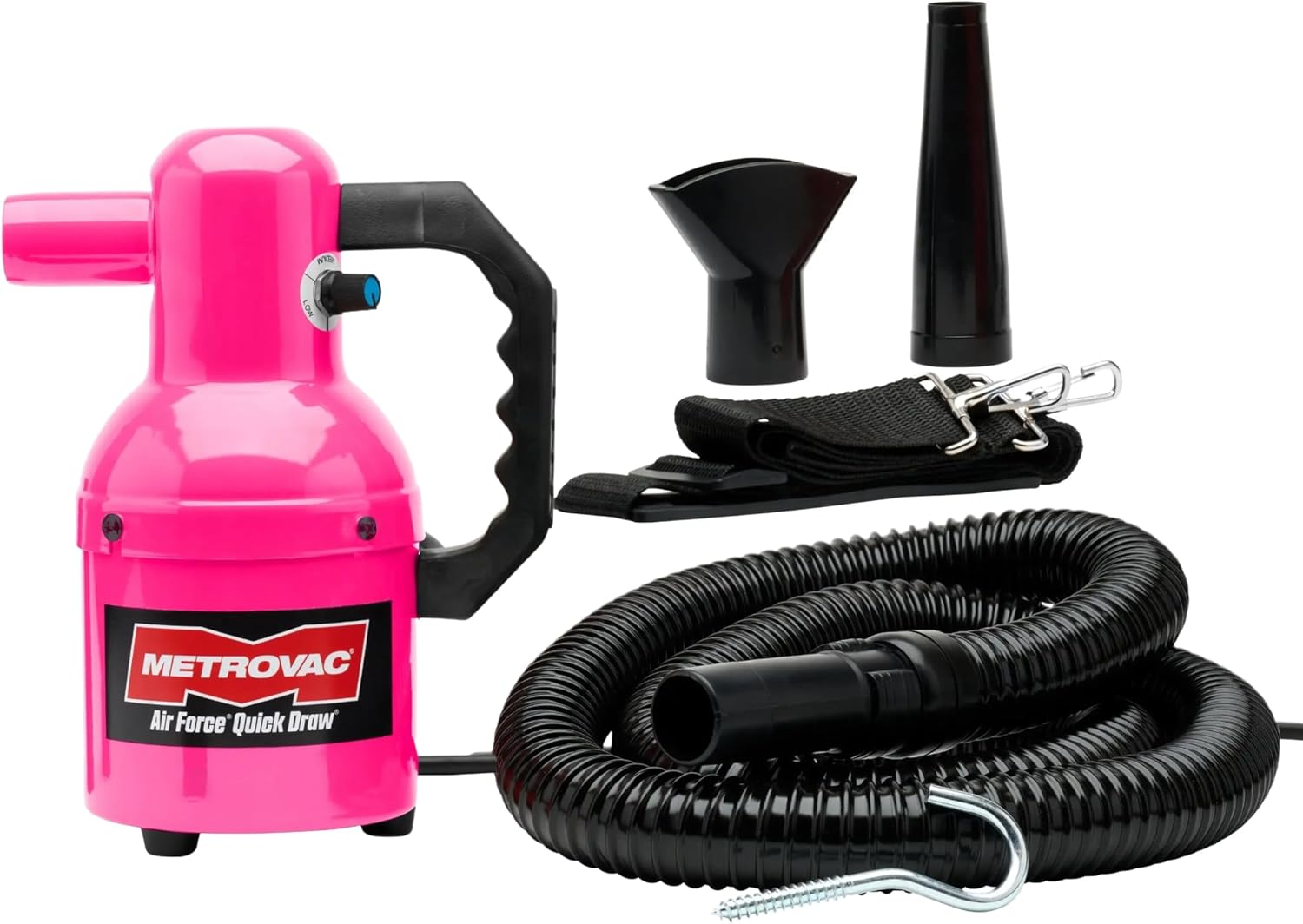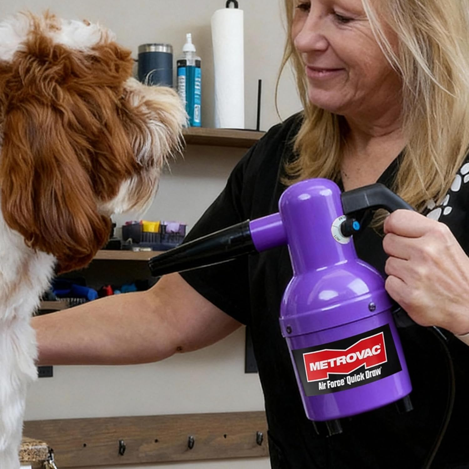 The Air Force Quick Draw Variable Speed produces 10 times more blowing power than a human hair dryer, and best of all, it's safe for all pets because there's no heating element to dry out their coats or burn their skin. It will eliminate water from even the wettest and hairiest of dogs.