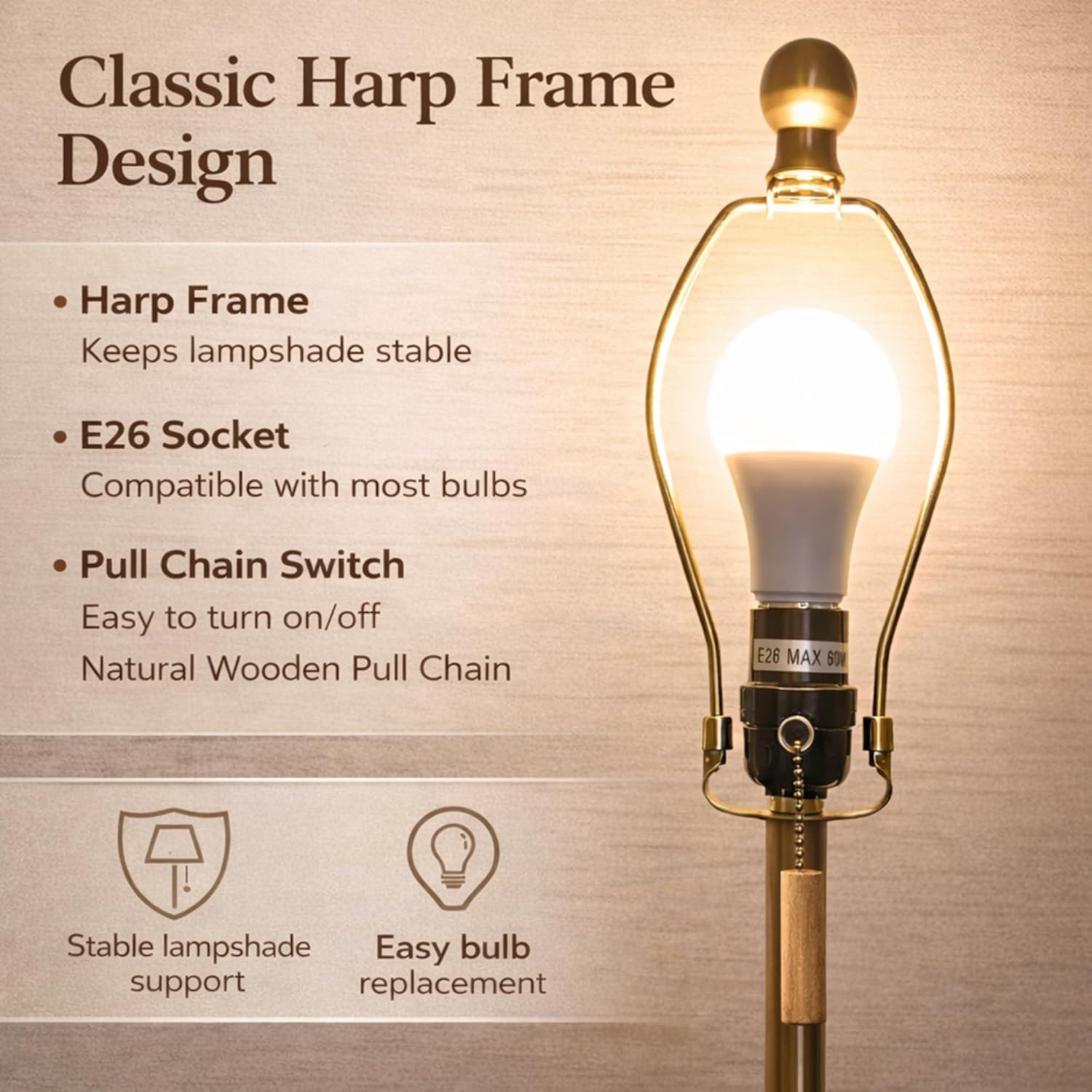 | Additional Features | Color Changing, 3-Way Adjustable Color Temperature, Dimmable, Energy Efficient, Includes LED Bulb 12W, Plug In, Portable, Solid Wood Legs, Tripod Design, Harp Frame Lampshade Support, Wood Pull Chain Switch, Solid Wood Construction |