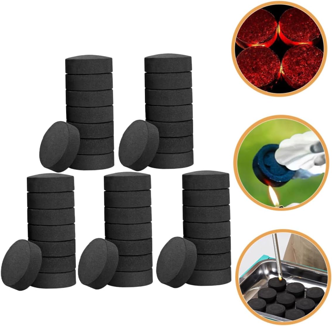 Package List 70 x charcoals Characteristics -Size:4.00X4.00X1.20cm/1.57X1.57X0.47in outdoor grilling charcoal -Color:Black heating -Material:Charcoal quick light coal disks -A must-have camping hiking tool, easy to use, for outdoor survival use bbq charcoal briquettes. -Send this to your friends who like outside camping as a present, making them happy stove fire charcoal. -Makes camping easier and more enjoyable for hiking, fishing, outdoor BBQ, adventure, family parties, and tablets. -It can be used to start your outdoor fire, camping fire, camping stove, grill, etc outdoor grill charcoal. -Charcoal is made of charcoal material, The charcoal is lightweight, you can carry it easily and conveniently solar oven.Goods Descriptionhousehold charcoal burning and will make no harm to health or dirty to your food.stove charcoal Great for both indoor and outdoor grill supplies.portable charcoal Made of charcoal material, these Grill Charcoal offer quick, convenient and light your campfire, charcoal chimney starter, fire logs or fireplace in no time
