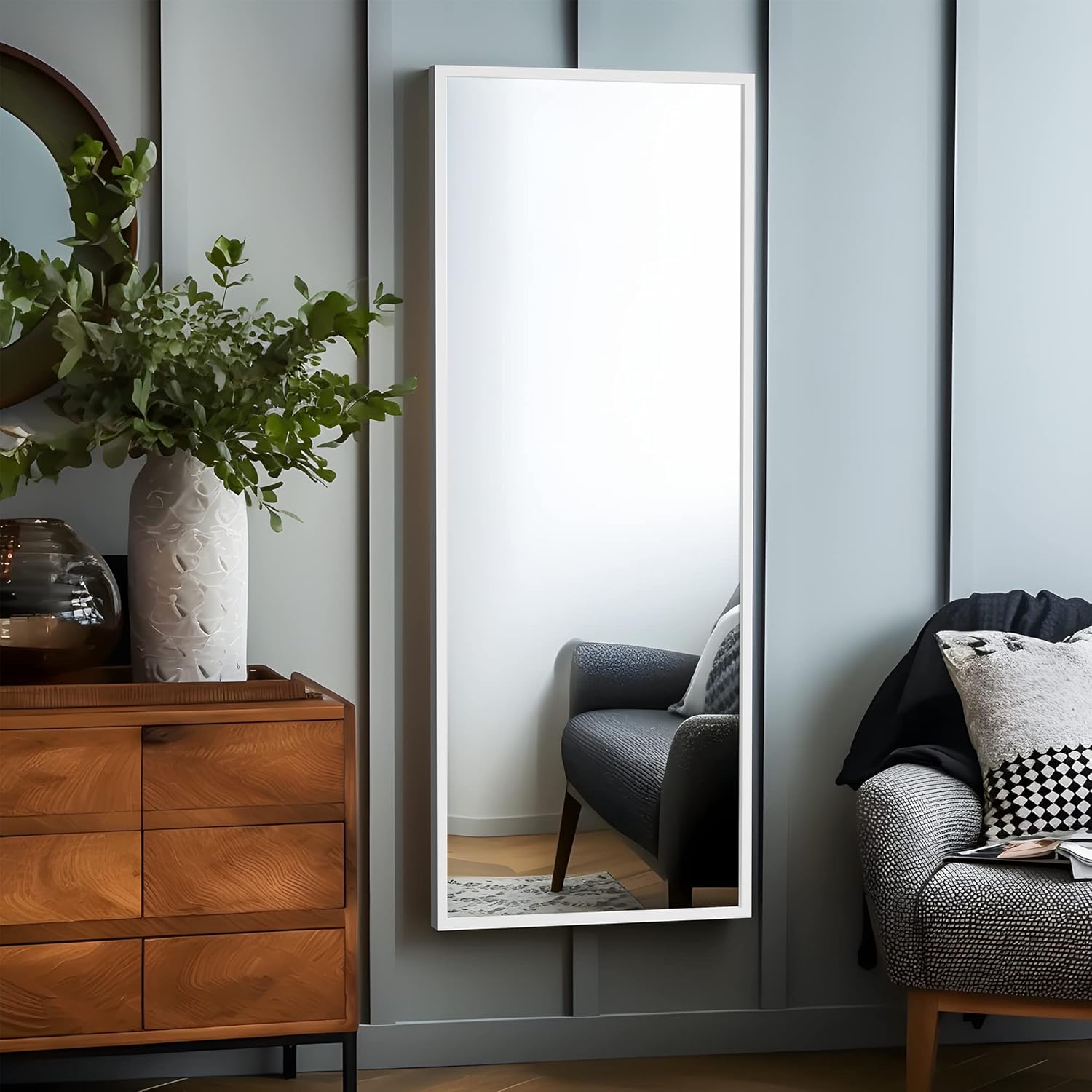 MIRUO Over The Door Mirror Full Length Mirror with Hanging Brackets, Hanging Over Door or Leaning Against Wall or Mounted On Wall, Door Mirror Full Length Mirror Over The Door, 44"x16", Black