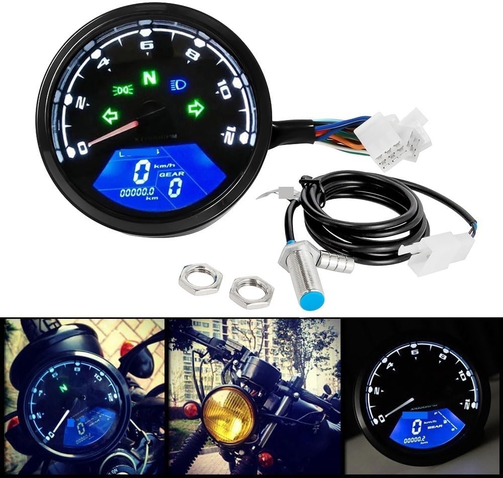 Before purchasing, please make sure the product size is suitable for your motorcycle vehicle12V Motorcycle Tachometer Tachometer Fuel Meter Dashboard Gauges Odometer Digital Indicator Motorbike Accessories UniversalAllinone design with digital signal processing system Using chip technology for most of the components Multiple indicator functions as the L R Turn Signal High Beam Position Lights N Lights Fits for most motorcycle that is with 4 stroke for 2 4 Cylinders default as 1 cylinder of the settingPackage includes1X Tachometer1X magnet1X wire with a and screw