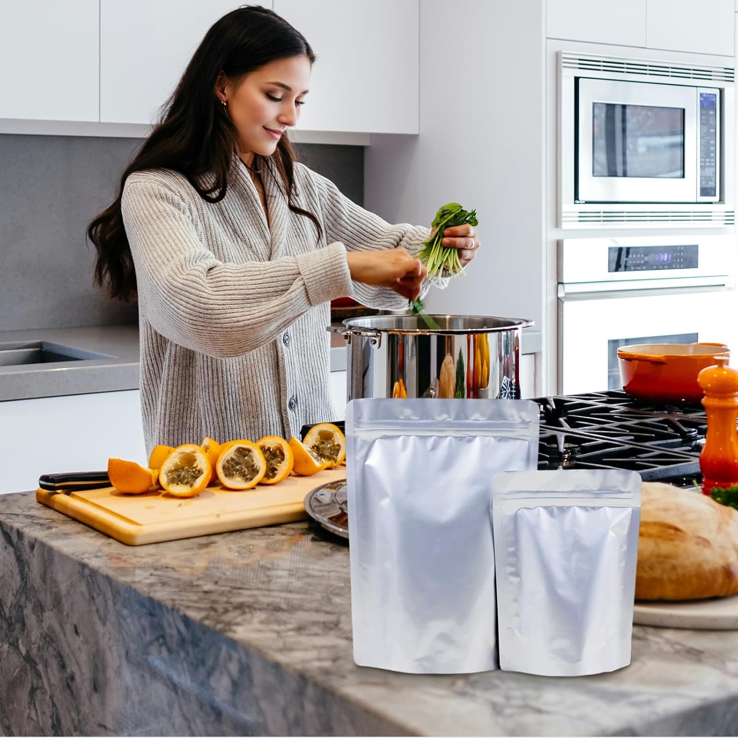 Muka flexible package teams are committed to solving the food storage problem and improving the quality of multi-style food package pouches. Our team continues to explore more possibilities for long-term food storage. With these Aluminum Foil Stand-Up Pouches, you can keep your food and product inside for long-term storage and also keep the food and product fresh and healthy. Our foil Mylar bags are made of food-grade materials, safe, durable, and Tasteless. They are made of food-grade pure aluminum Foil, which can protect your food inside from light and air permeation and keep your food safe and stored for the longer term. With a wide bottom, these package bags can stand up. They are heat-sealable and reusable. They are great package pouches for grains, beans, oats, pet food, dried fruits, candy, coffee beans, tea, etc. Material: PET/Aluminum Foil/PESize and thickness for double sides: 5 x 7, 8.6 mil6 x 9, 8.6 mil6.8 x 9.5, 9.4 mil 7 x 10, 9.4 mil7 x 12, 9.4 mil8.25 x 12.25, 9.4 mil10 x 14, 9.4 milColor: SilverPackage: 50pcs pouch packaged with 1 opp bag.