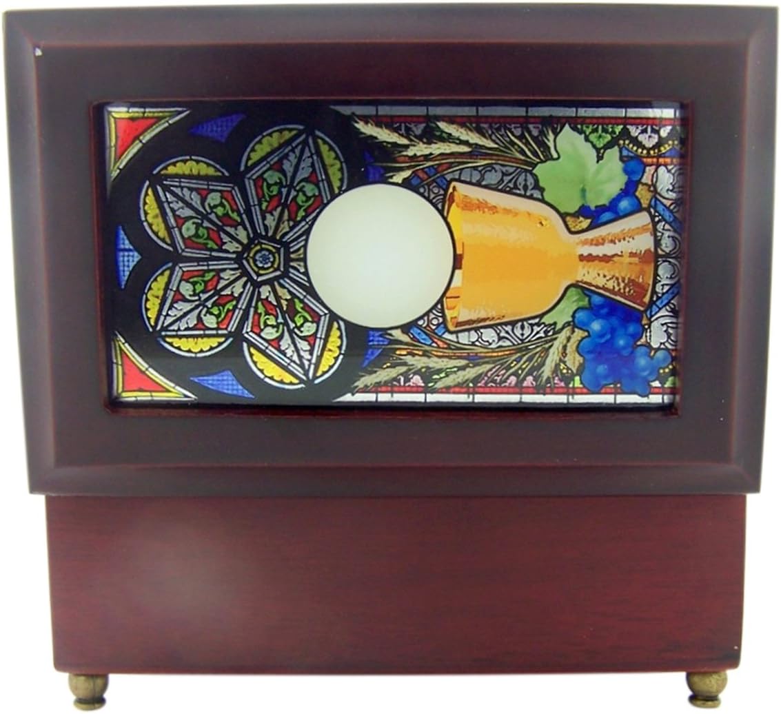Wood - 6 1/2 Inch (H) x 4 Inch (W) - Religious Stained Glass - Mahogany Wood Finish - Music Box Plays Ave Maria - Great Gift for First Communicant