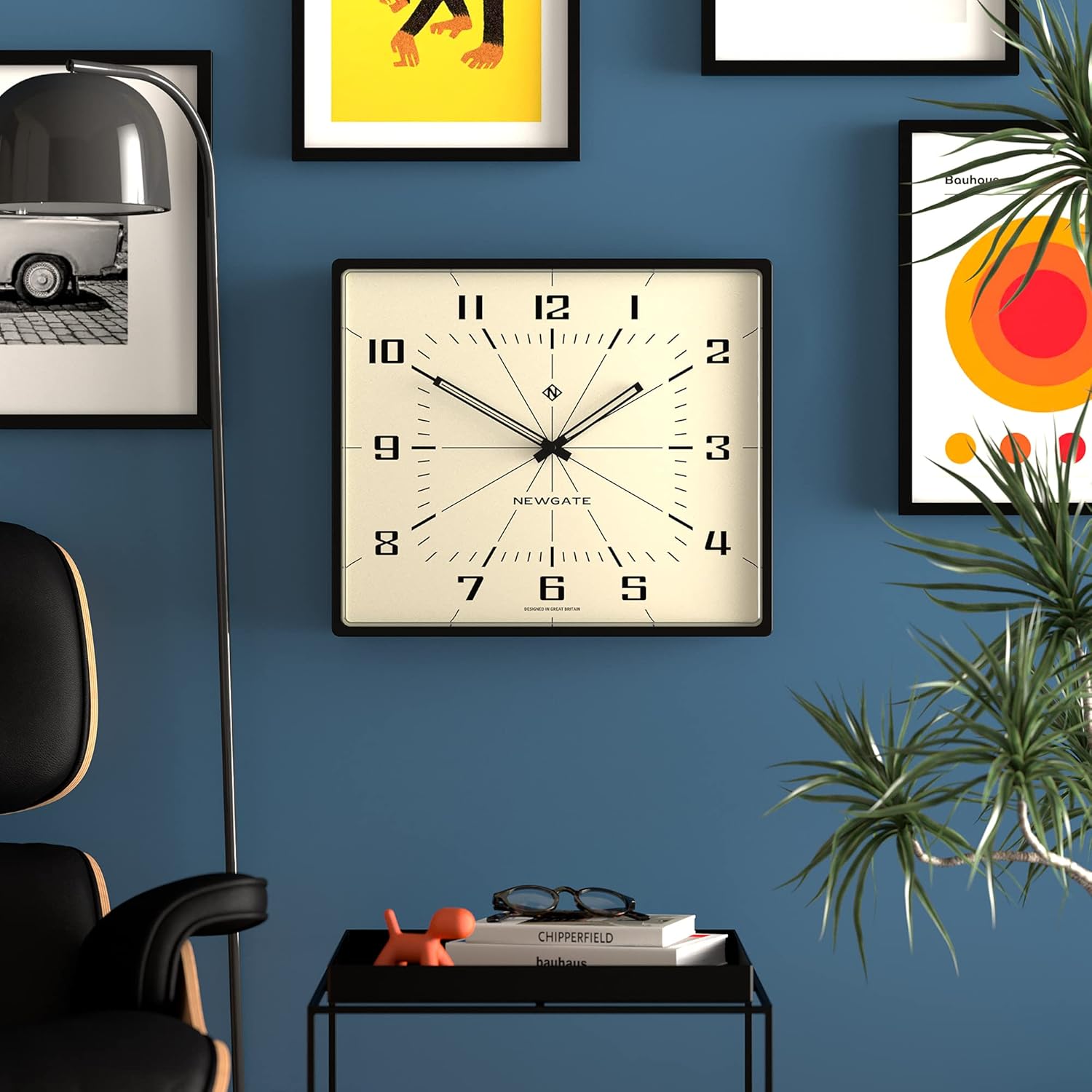 Dimensions 42 x 36 x 8cm / 16.5 x 14 x 3in. Designed and made exclusively by Newgate Clocks. A mid-Century modern wall clock with a cream face and retro screen printed dial with Arabic hour markers. Cool and stylish, ideal for kitchens, living rooms and offices, where style matters. Accurate and reliable quartz silent sweep movement with no ticking noise. If your hearing is particularly sensitive in a completely silent room you may hear a very quiet whirring. Requires 1 x high quality branded alkaline AA battery (not included).