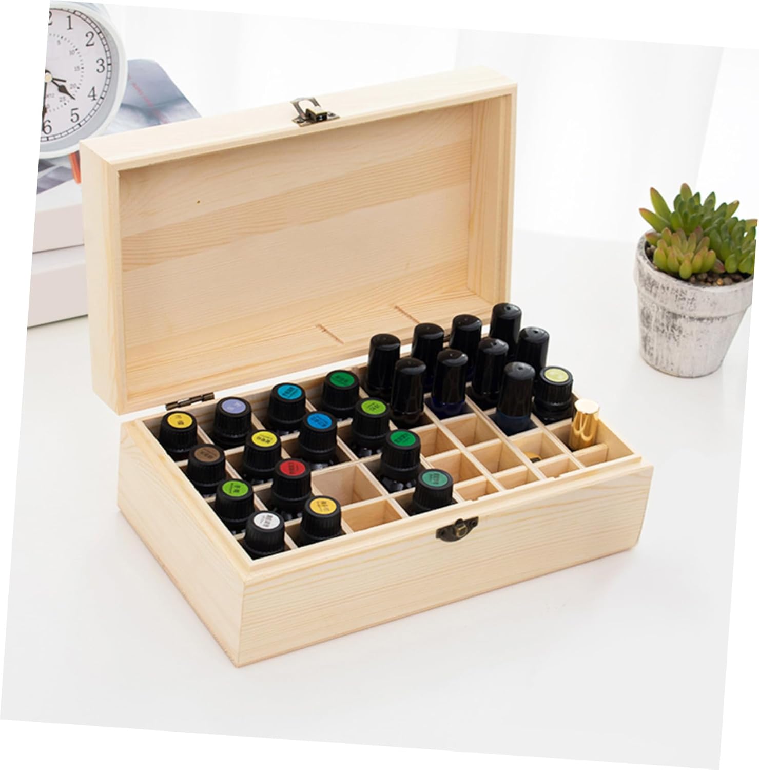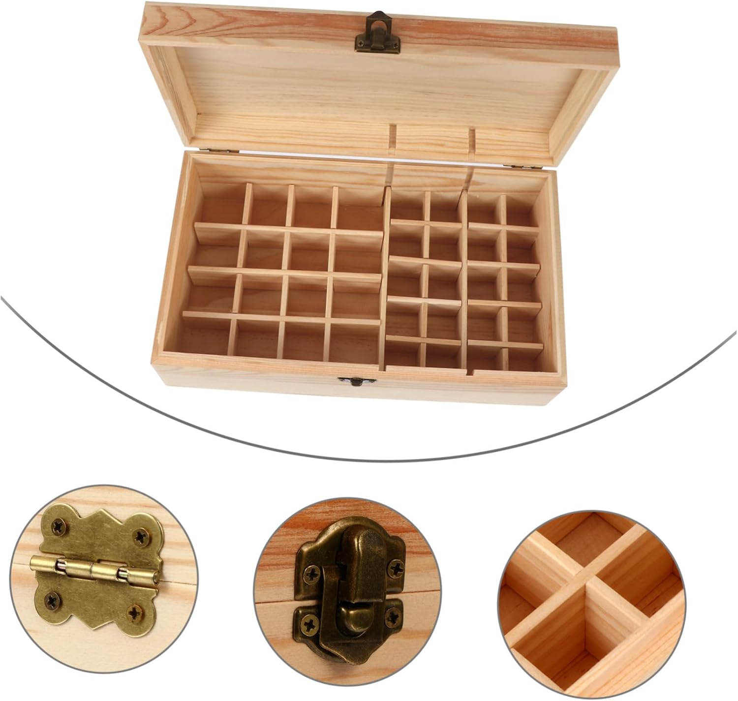 Package Include 1 x Essential Oil Storage Box Characteristics -Color:Khaki Essential Oil Bottle Container -Material: Wood Essential Oil Display Rack -Size: 28.00X16.00X10.00cm/11.00X6.29X3.93in Essential Oil Organizer - With large capacity, you can store many essential oil bottles with you Essential Oil Box. - Manual polishing making can protect your essential oil from sun damaging. 36 Slots Essential Oil Carrying Case - Lightweight and compact design, does not take up space, easy to take. Aromatherapy Bottles Storage Case - Fine workmanship and chic details, it is both practical and beautiful Aromatherapy Bottles Organizer. - Movable inner partition plate, can be disassembled as you like Wood Essential Oils Holder.Goods DescriptionWood Essential Oils Holder Made from wood, it can keep your essential oil collection organized.Wood Holder for Essential Oil Sturdy yet light weight, excellent craftsmanship, it safely stores and protects your essential oil bottles, for travel.36 Slots Essential Oil Carrying Case This is a essential oil bottle storage box
