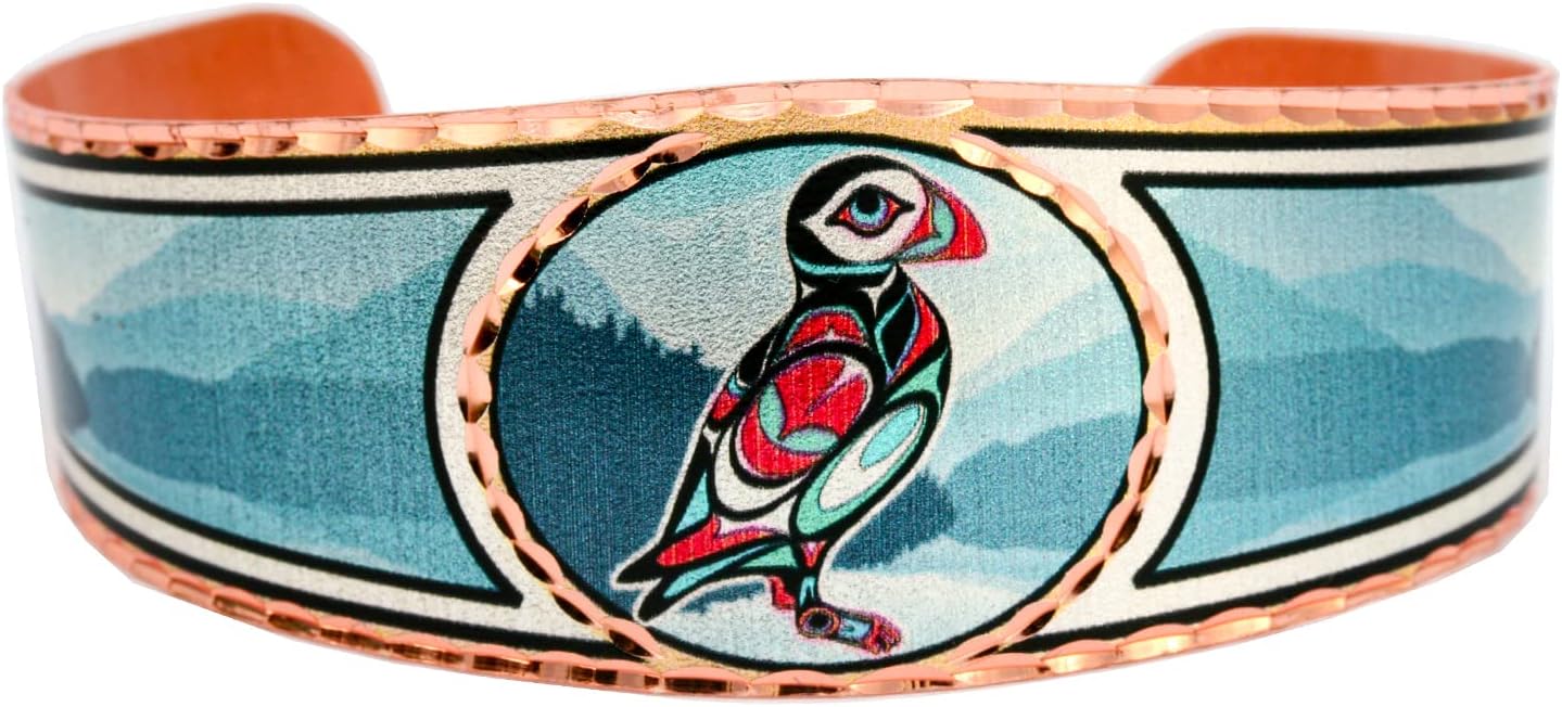 Celebrate the rich visual language of the Pacific Northwest with the FRONT LINE JEWELRY Haida Butterfly Bracelet – a stunning copper cuff that reflects the spirit and symbolism of traditional Haida art. Crafted from high-quality copper and diamond-cut for detail, this bracelet shines with silver-plated elegance while honoring the intricate linework found in Native American totem designs. The butterfly, a symbol of transformation and beauty in many Indigenous cultures, is represented here with reverence and precision. Whether worn as a statement piece or gifted to someone who appreciates meaningful art, this bracelet offers a comfortable, adjustable fit and a powerful connection to cultural storytelling. Ideal for collectors, gift-givers, or anyone seeking jewelry that goes beyond decoration – this piece is a tribute to art, identity, and tradition.