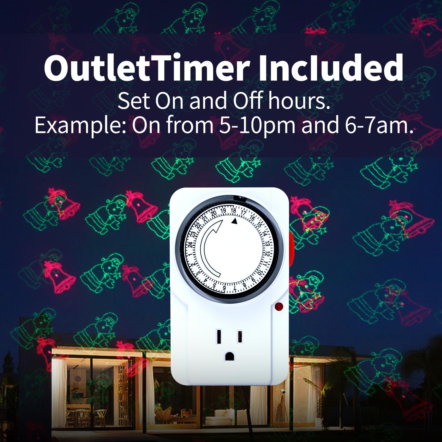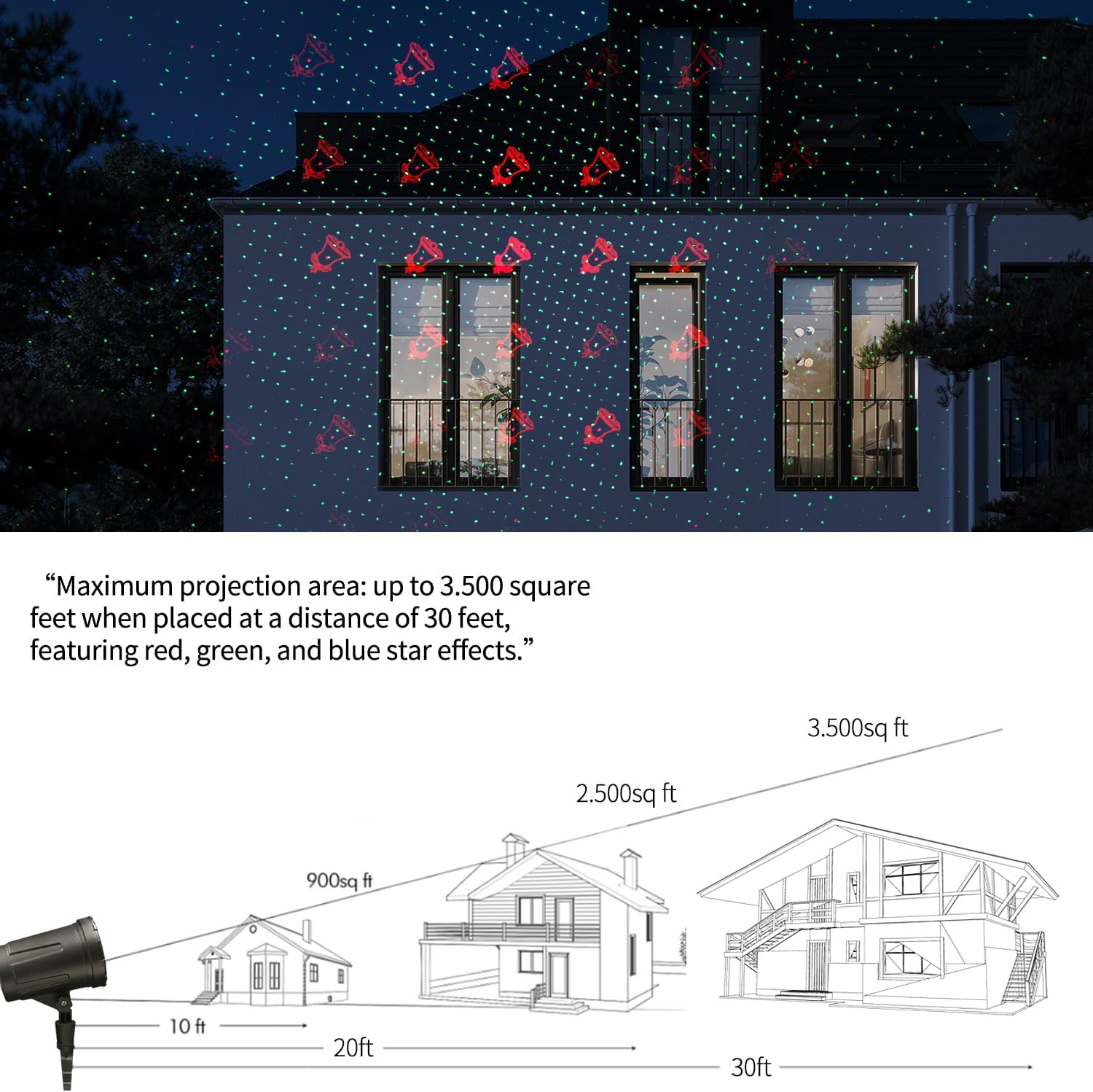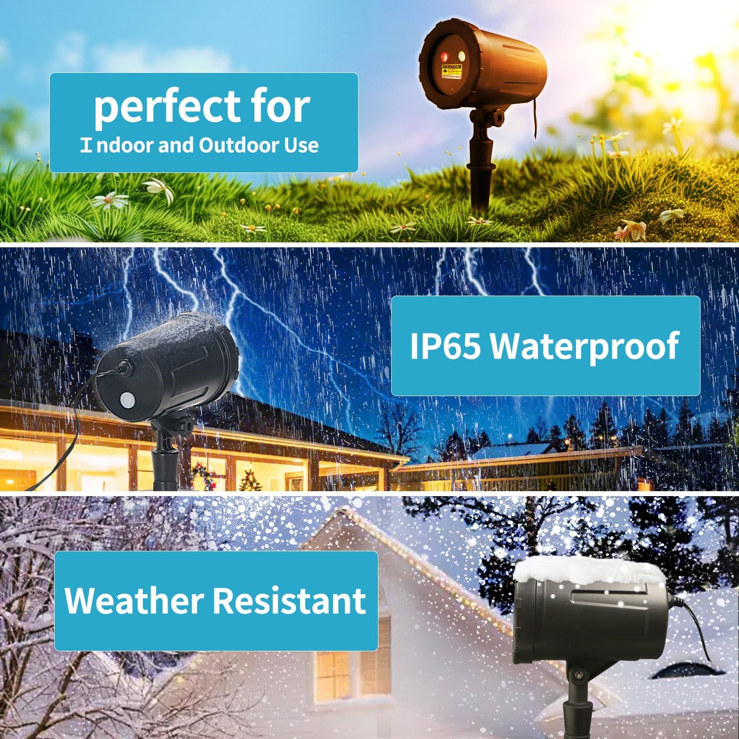 Transform your outdoor space into a winter wonderland with our Christmas Projector Laser Lights Outdoor. This projector features 8 different festive patterns in vibrant red and green lasers, including snowflakes, stars, and Christmas trees, to create a magical holiday atmosphere.