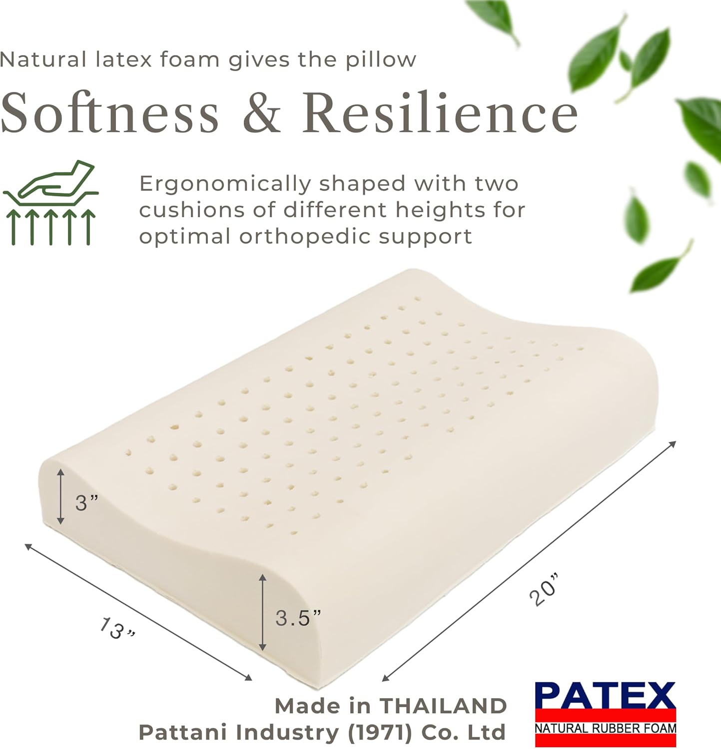| Special Feature | 100% natural hypoallergenic latex core, 3.5” height for balanced cervical support, Breathable ventilated structure with jersey cover, Medium-profile ergonomic wave latex pillow, Smooth, non-textured surface for soft comfort |