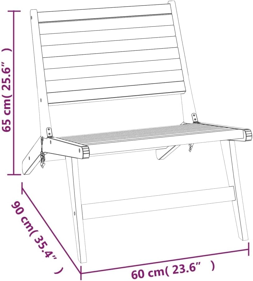 This comfortable wooden garden chair has a classic design and will make a addition to your garden, patio or terrace.Durable teak wood: Solid teak wood is a beautiful natural material. It has been seasoned, kiln dried and then fine sanded to give a very smooth appearance. Teak wood is known for its exceptional strength and weather resistance.Sturdy frame: The chair's wooden frame ensures sturdiness and stability.Foldable design: The backrest of this outdoor chair can be folded when not in use.Note:Each product comes with an assembly manual in the box for easy assembly.In order to extend the life of your outdoor furniture, we recommend you to protect it with a waterproof cover.Material: Solid teak wood with waterbase finishDimensions: 23.6" x 35.4" x 25.6" (W x D x H)Seat depth: 17.3"Seat height from the ground: 13.8"